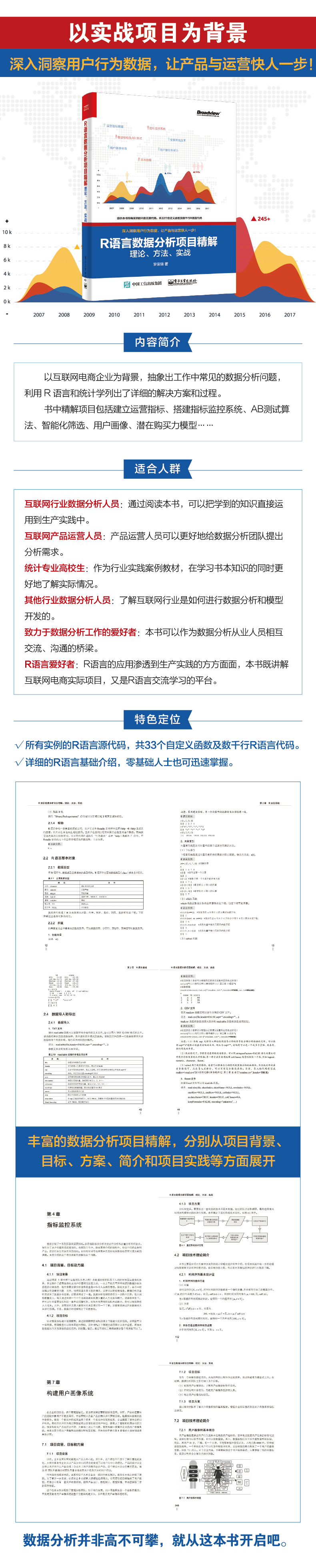 罗荣锦,应用统计学硕士、应用数学和国际经济与贸易双学士。有8年数据分析工作经验,先后从事过金融数据分析、网络游戏数据分析、B2B数据库营销及互联网用户行为数据分析。现就职于携程旅行网,担任资深数据分析师,主要从事用户行为分析研究、统计学与数据挖掘应用等工作,擅长统计建模,熟悉R语言、SAS、SPSS等数据挖掘工具。从事数据研究工作,一定要“耐得住寂寞,忍受得了孤独”。