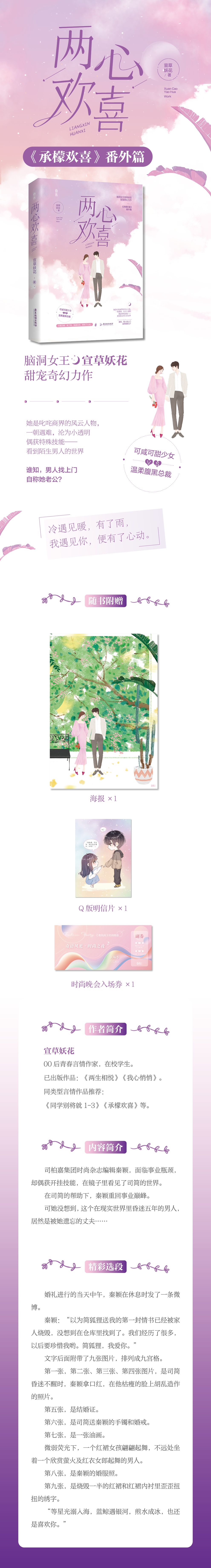 宣草妖花,00后青春言情作家,在校学生。 已出版作品:《两生相悦》《我心悄悄》。 同类型言情作品推荐: 《同学别将就1-3》《承檬欢喜》等。