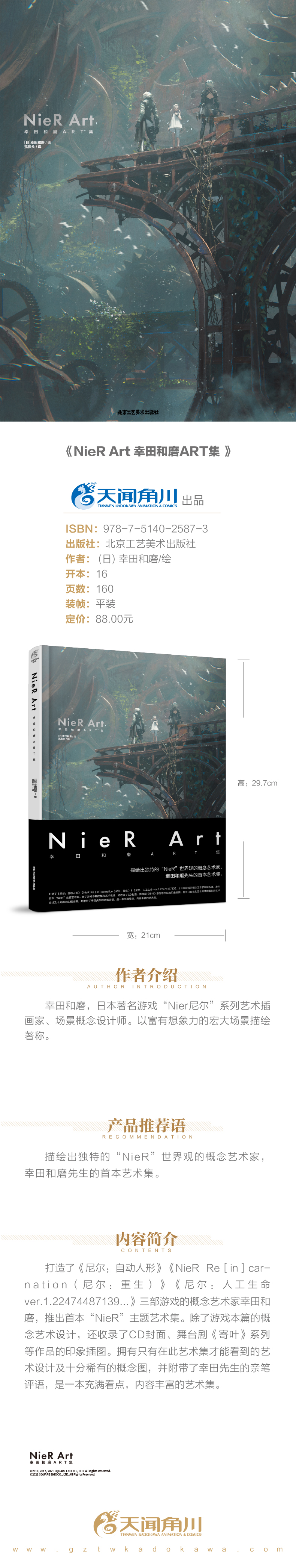 NieR Art 幸田和磨ART集 出版时间 2023-04-01T00:00 画册/作品集 16532 作者: (日) 幸田和磨 出版社: 北京工艺美术 原售价: 88.00 折扣价: 0.00 折扣购买: NieR Art 幸田和磨ART集 ISBN: 9787514025873 作者简介 作者:打造了《尼尔:自动人形》《NieR Re[in]carnation(尼尔:重生)》《尼尔:人工生命 ver.1.22474487139...》三部游戏的概念艺术家幸田和磨。 内容简介 ※游戏本篇的概念艺术设计 ※CD封面、舞台剧《寄叶》系列等作品的印象插图 ※只有在此艺术集才能看到的艺术设计以及十分稀有的概念图 ※幸田先生的亲笔评语 上一篇:清画全集(第10卷第3册石涛)(精)下一篇:72幅名画读懂世界