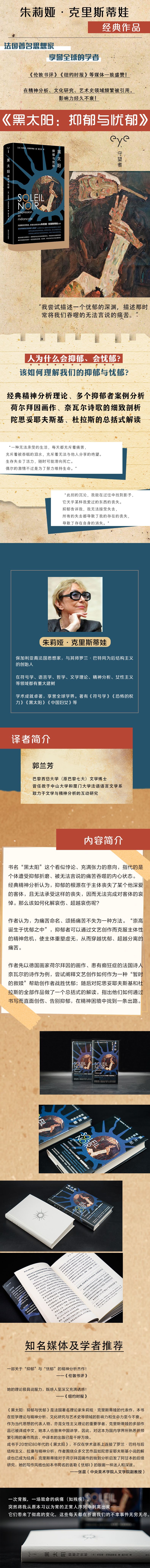 朱莉娅?克里斯蒂娃(Julia Kristeva,1941— ),保加利亚裔法国思想家,在符号学、语言学、哲学、文学理论、精神分析、女性主义等领域都有重大建树,现为巴黎西岱大学(原巴黎七大)荣休教授。与其师罗兰·巴特同为后结构主义的创始人,互文性理论与贱斥理论的奠基人,学术成就卓著,享誉全球学界。著有《符号学》《恐怖的权力》《黑太阳》《中国妇女》等。 【译者简介】 郭兰芳,巴黎西岱大学文学博士,曾任教于中山大学法语语言文学系和厦门大学法语语言文学系,致力于文学与精神分析的互动研究。