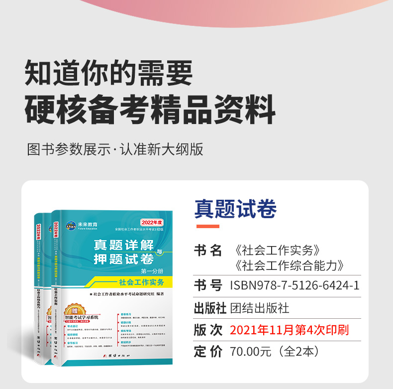 2022年全国社会工作者职业水平考试(初级)真题详解与押题试卷 出版时间 2018-06-01T00:00 社会工作者职业水平 87417 作者: 全国社会工作者职业水平考试应试指导教材编写组 出版社: 团结 原售价: 70.00 折扣价: 31.50 折扣购买: 2022年全国社会工作者职业水平考试(初级)真题详解与押题试卷 ISBN: 9787512664241 作者简介 内容简介 上一篇:社会工作综合能力(中级)精讲精练下一篇:社会工作综合能力(中级上下全国社会工作者职业水平考试辅导用书)
