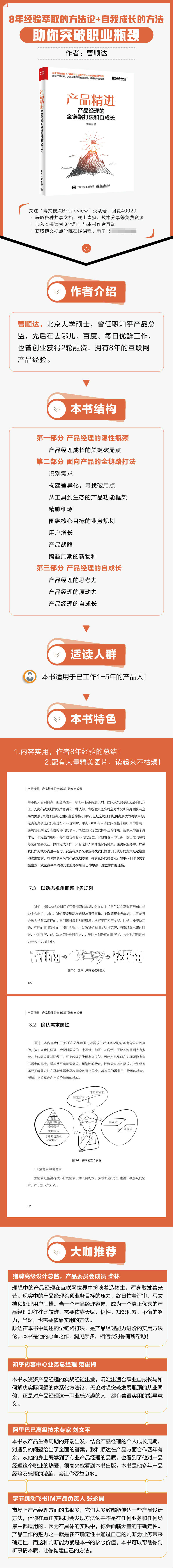 产品精进:产品经理的全链路打法和自成长 出版时间 2021-05-01T00:00 其他类别 48132 作者: 曹顺达 出版社: 电子工业 原售价: 59.00 折扣价: 41.30 折扣购买: 产品精进:产品经理的全链路打法和自成长 ISBN: 9787121409295 作者简介 北京大学硕士,曾任知乎产品总监,先后在去哪儿网、百度、每日优鲜工作,曾创业并获得两轮融资,拥有8年互联网产品经验。 内容简介 上一篇:工业机器人编程与调试(魏荣)下一篇:大明征程(1592-1600)