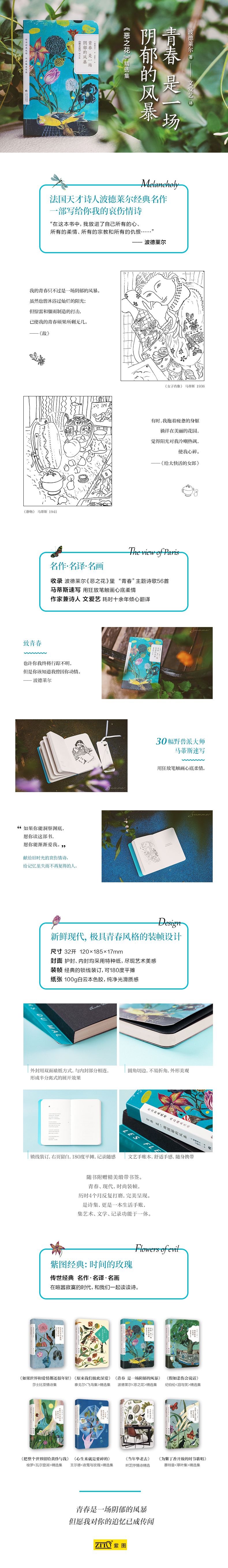 \"★《青春 是一场阴郁的风暴》是莎士比亚情诗集《如果世界和爱情都还很年轻》系列书第3本;系列书第2本为《原来我们彼此深爱》(泰戈尔精选集)。本系列产品均为:传世文学经典,名作名画名译合璧,堪为#时间的玫瑰#。 ★新鲜现代,极具青春风格的装帧设计《青春 是一场阴郁的风暴》封面插画景象为:在一只鸟的身体之上生长出妖冶、黑暗的花。像极青春本身:理想与忧郁交错,对应波德莱尔的诗句“雪崩啊,你可愿带我一起坠落”。 ★收录法国天才诗人波德莱尔《恶之花》里“青春”主题诗歌56首,你会不小心从中读到自己的怕与爱,忧伤与绝望;口袋本装帧,可180度平摊,左页为诗,右页留白,可记录随感;插图为30幅野兽派大师马蒂斯速写,用狂放的笔触表达心底的柔情;当代著名作家、翻译家、诗人文爱艺耗时十余年倾心翻译。 ★“也许你我终将行踪不明,但是你该知道我曾因你动情。”谨以此书献给每个人并不容易的青春,和记忆里所有失而不再复得的人。你治好我忧郁,而后赐我悲伤。记忆里所有失而不再复得的人。你治好我忧郁,而后赐我悲伤。 \"