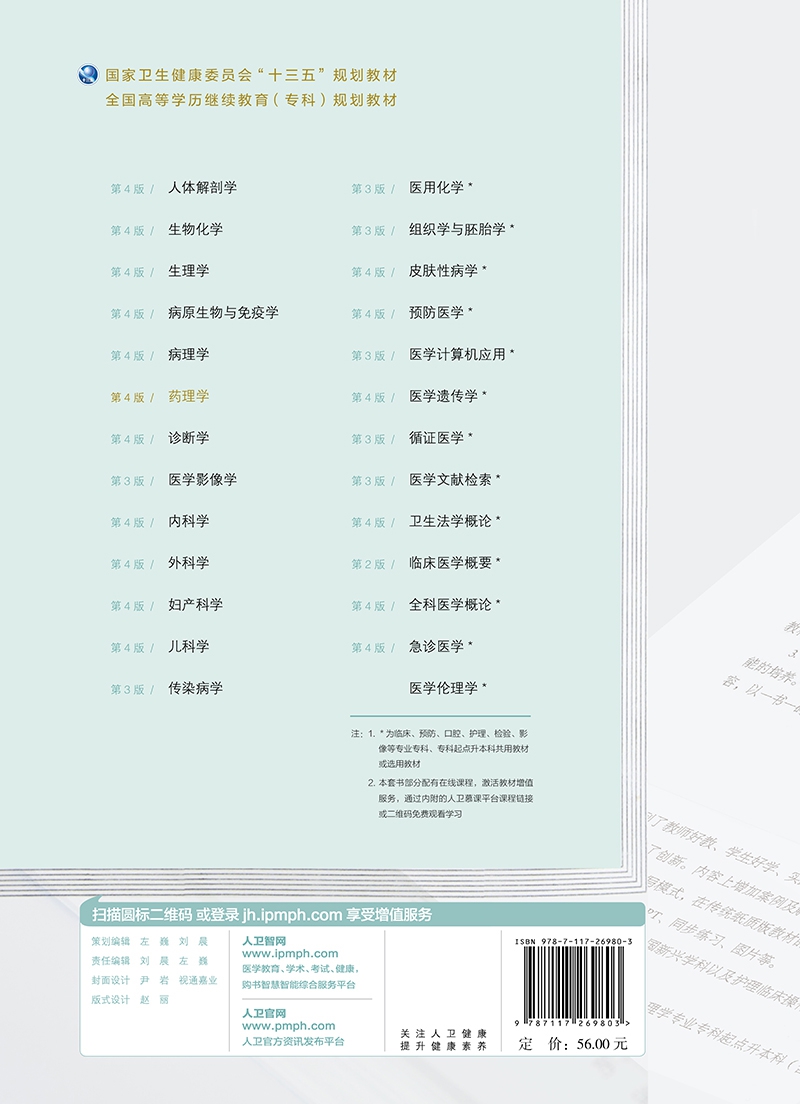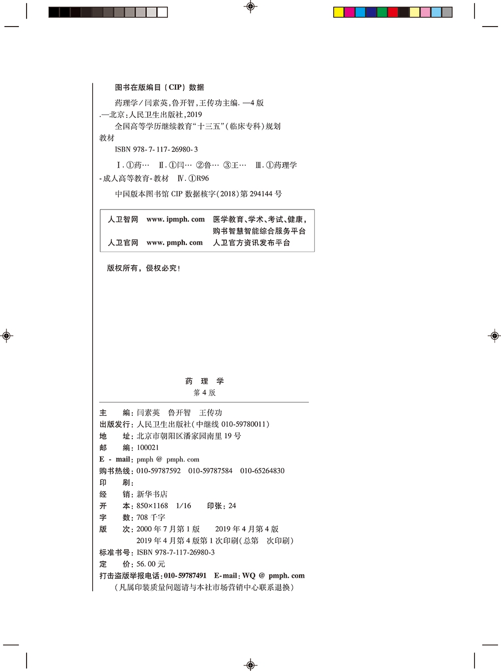 折扣购买: 药理学(第4版/配增值)(全国高等学历继续教育“十三五”(临床专科)规划教材)