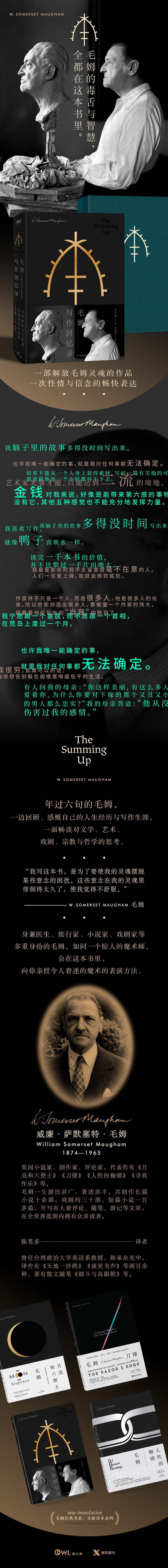 \\\"★自1938年毛姆64岁首次出版后,多次再版,直至今日仍为广大读者所欢迎。 ★毛姆为自己执笔,与《人性的枷锁》《月亮和六便士》等经典长篇同为了解毛姆其人其事-以及文学研究必不可少的散文随笔。 ★余光中弟子、梁实秋文学奖得主翻译家陈苍多译作,精装珍藏版,为您解析毛姆的毒舌与智慧。 ★磨铁旗下人文品牌“猫头鹰”出品 \\\"