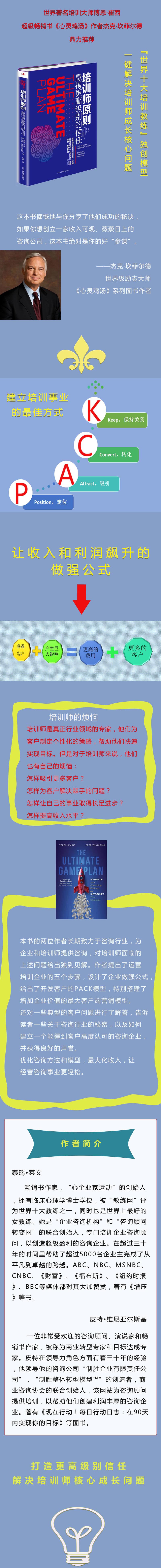“世界十大培训教练”的成功之道。 四种咨询模式,三大成功模型。 做强公式助力做强你的培训事业。 定位、吸引、转化、保持关系——PACK模型让你的客户源源不绝! 客户影响*化模型帮你创造卓越价值!