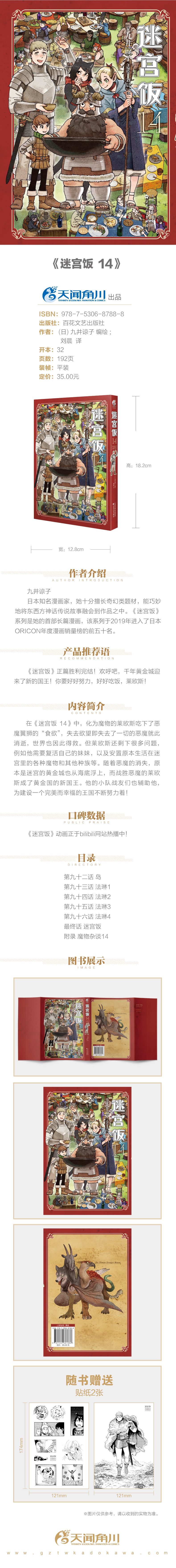 迷宫饭. 14 出版时间 2024-04-01T00:00 其他类别 31547 作者: (日) 九井谅子 出版社: 百花文艺 原售价: 35.00 折扣价: 28.00 折扣购买: 迷宫饭. 14 ISBN: 9787530687888 作者简介 作者:本书作者九井谅子是日本知名漫画家,她十分擅长奇幻类题材,能巧妙地将东西方神话传说故事融会到作品之中。《迷宫饭》系列是她的长篇漫画,该系列于2019年进入了日本ORICON年度漫画销量榜的前五十名。 内容简介 莱欧斯,去拯救你的迷宫之主玛露西尔,然后直面那最终BOSS翼狮吧! 《迷宫饭》动画正于bilibili网站热播中! 上一篇:(高职高专)会计信息化(第四版)(下一篇:墨子训释(共4册)(精)/中国墨子学会书库