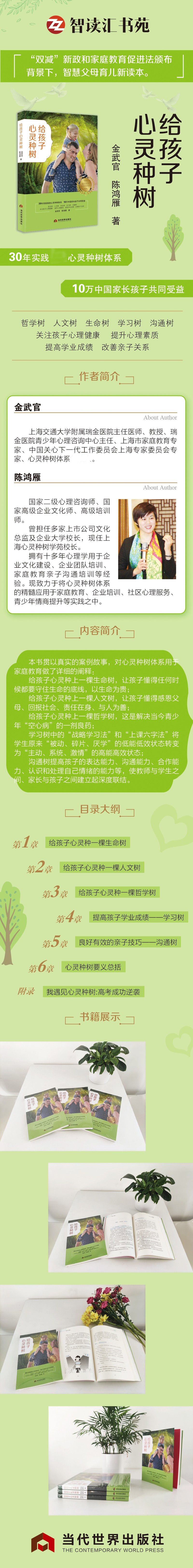 金武官,上海交通大学附属瑞金医院主任医师、心理教授,上海市家庭教育专家,中国关系下一代工作委员会上海专家委员会专家。从事青少年心理咨询近30年,积累了丰富的实践经验,独创“心灵种树”体系,帮助孩子摆脱迷茫,从内至外全方位提升。陈鸿雁,上海心灵种树文化发展有限公司执行董事,国家二级心理咨询师。拥有十多年心理学用于企业文化建设、企业团队培训、家庭教育亲子沟通培训等经验。现致力于将心灵种树体系的精髓应用于家庭教育、企业培训、社区心理服务、青少年情商提升等实践之中。