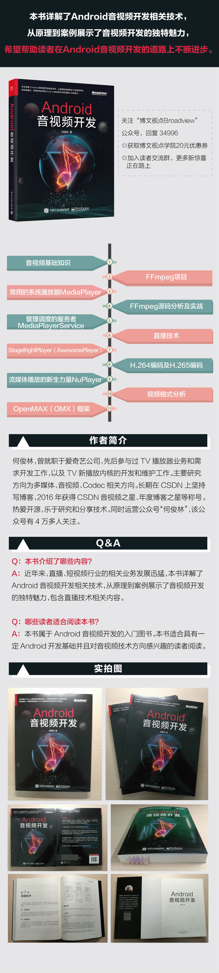 Android音视频开发 出版时间 2018-11-01T00:00 Andriod 89247 作者: 何俊林 出版社: 电子工业 原售价: 99.00 折扣价: 69.30 折扣购买: Android音视频开发 ISBN: 9787121349966 作者简介 内容简介 上一篇:一个APP的诞生(从零开始设计你的手机应用)下一篇:Unity3D动作游戏开发实战