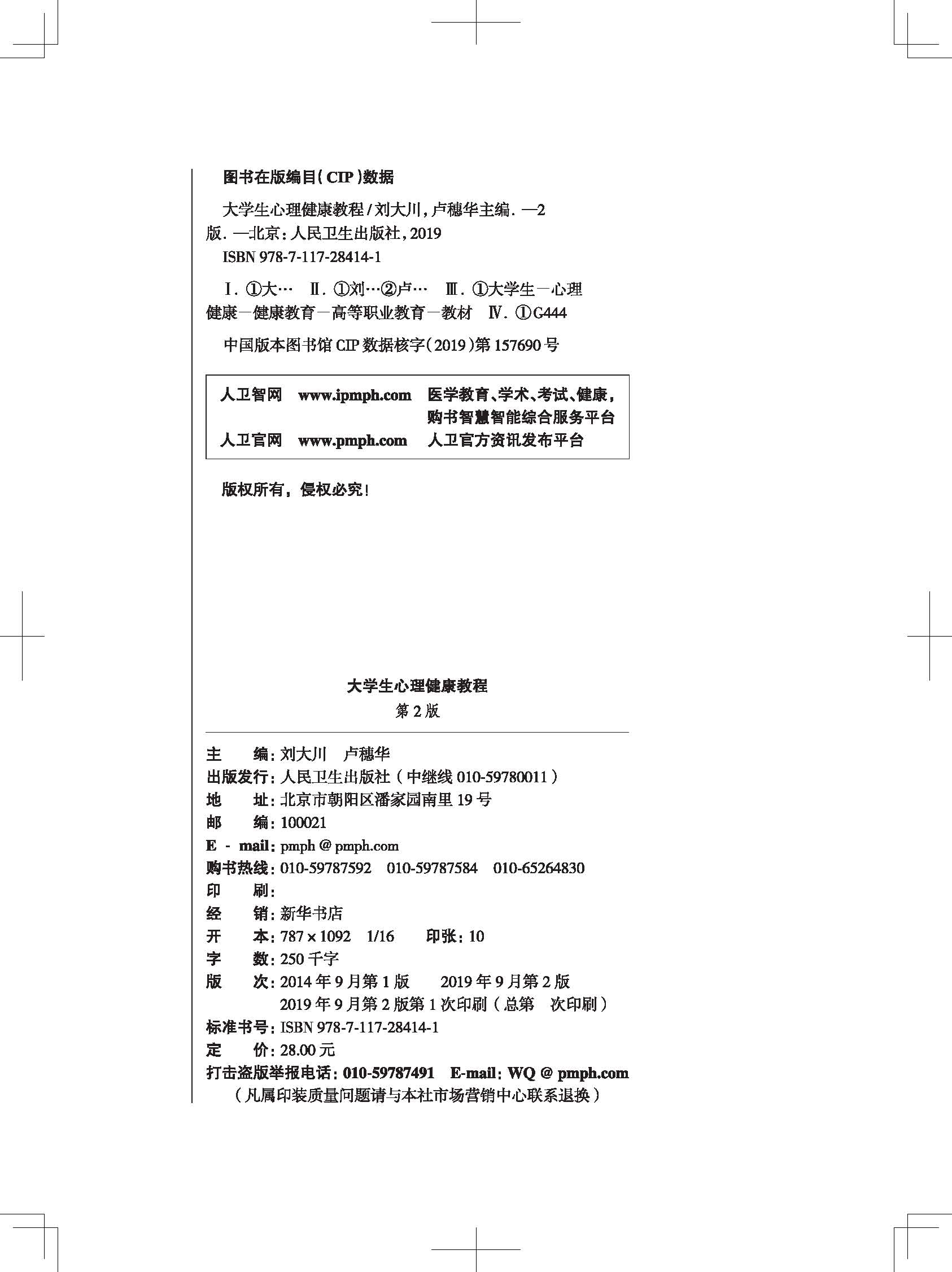 大学生心理健康教程(第2版/广东省区规教材/配增值) 出版时间 2019-09-20T00:00 其他类别 68517 作者: 刘大川、卢穗华 出版社: 人民卫生 原售价: 28.00 折扣价: 21.90 折扣购买: 大学生心理健康教程(第2版/广东省区规教材/配增值) ISBN: 9787117284141 作者简介 内容简介 大学生-心理健康-健康教育-高等职业教育-教材 上一篇:营救麦克黄下一篇:梦想与行动:中国环境法典之证成