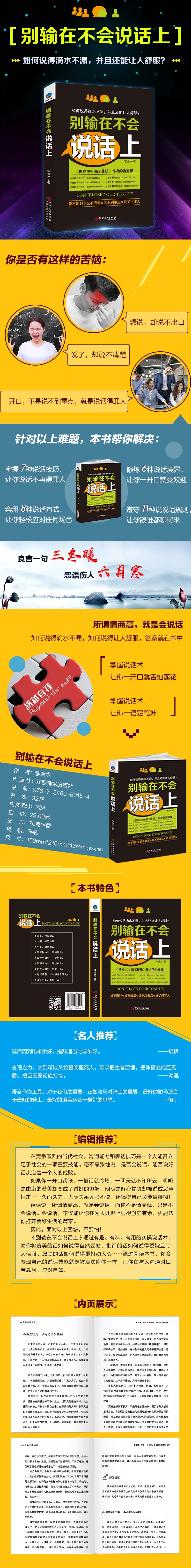 别输在不会说话上 出版时间 2018-03-01T00:00 演讲口才 13356 作者: 李金水 出版社: 江西美术 原售价: 29.00 折扣价: 7.00 折扣购买: 别输在不会说话上 ISBN: 9787548060154 作者简介 李金水,公司高管,长期从事管理咨询工作,出版有《责任胜于能力》《三分制度七分执行》《不懂带人就当不好经理》《绩效考核与量化管理全案》等图书。 内容简介 上一篇:处世九策(共3册)下一篇:幸福3件事(有期待有事做有人爱)