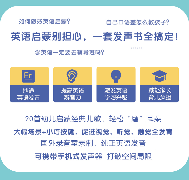 我会唱英文儿歌(精)/孩子的语言启蒙发声书 出版时间 2021-03-01T00:00 启蒙英语 8419 作者: 编者:原林惠|责编:郭伊萱|绘画:(俄)叶卡捷琳娜·特鲁汉 出版社: 未来 原售价: 138.00 折扣价: 75.90 折扣购买: 我会唱英文儿歌(精)/孩子的语言启蒙发声书 ISBN: 9787541770586 作者简介 内容简介 上一篇:到月亮上去(4-5岁下10以内的数字外研社点读书)/丽声我的第一套亲子英文绘本下一篇:动物乐园/快乐手工玩转粘土
