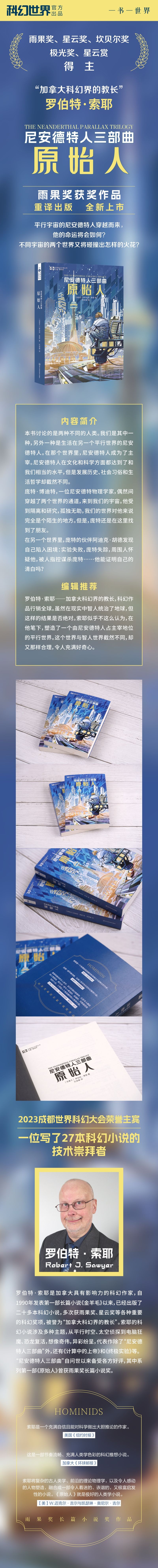 罗伯特?索耶是加拿大最有影响力的科幻作家,自1990年发表第一部长篇小说《金羊毛》以来,已经出版了二十多本科幻小说,多次获雨果奖、星云奖等各种重要的科幻奖项,被誉为“加拿大科幻界的教长”。索耶的科幻小说涉及多种主题,从平行时空、太空侦探到电脑狂魔、恐龙复活,想像奇伟,异彩纷呈,代表作除了“尼安德特人三部曲”外,还有《计算中的上帝》和《终极实验》等。 “尼安德特人三部曲”自问世以来备受各方好评,其中系列第一部《原始人》曾获雨果奖长篇小说奖。