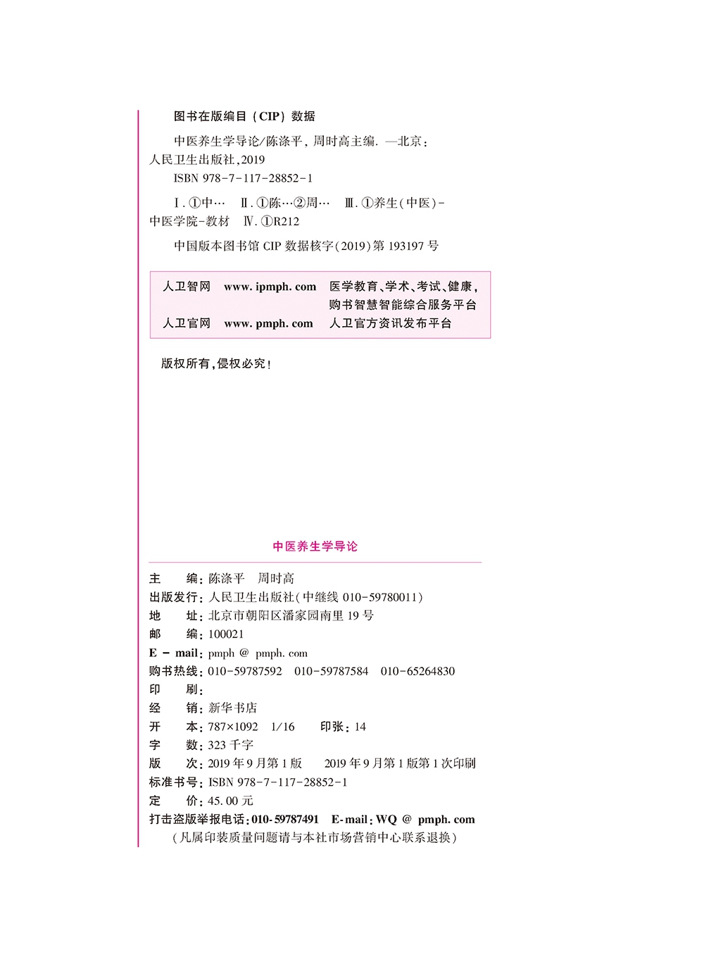 中医养生学导论(本科/中医养生学/配增值) 出版时间 2019-09-20T00:00 其他类别 64458 作者: 陈涤平、周时高 出版社: 人民卫生 原售价: 45.00 折扣价: 35.10 折扣购买: 中医养生学导论(本科/中医养生学/配增值) ISBN: 9787117288521 作者简介 内容简介 养生(中医)-中医学院-教材 上一篇:美国文艺复兴:爱默生与惠特曼时代的艺术和表现(外国文学研究文库.第三辑)下一篇:考点通关必背(药学中级第2版2012全国卫生专业技术资格考试辅导用书)