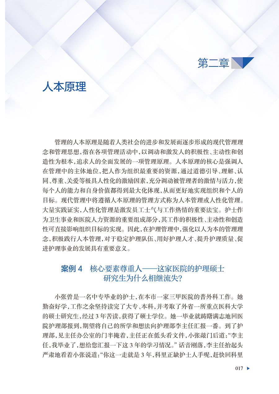 本书由刘华平、李红、蒋艳主编,在编写结构上,全书共分15个章节,贯穿主线的有:管理学的四大原理,如系统原理、人本原理、动态原理和效益原理;护理管理的五项基本职能,如护理计划、护理组织管理、护理领导、护理人力资源管理、护理控制等;当前我国护理的难点和热点问题,如护理岗位管理、护理绩效管理、护理文化管理、护理危机管理、护理信息管理以及护理创新管理等。邀请了国内具有丰富临床管理经验的护理专家,引用管理实际案例,提出管理问题,借由相关管理的知识链接,对管理问题进行分析和解读,并分享和传承管理经验。 读者对象:各级各类医院护理部主任、护理院长、护士长,从事护理管理工作的从业人员,本书同时也是医院各级护理管理人员的管理指南用书,还可作为高等学校护理管理教学使用的参考书。