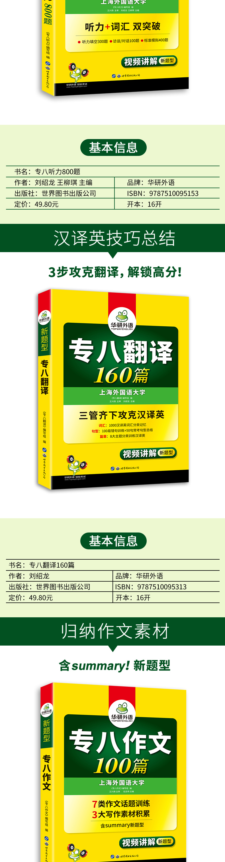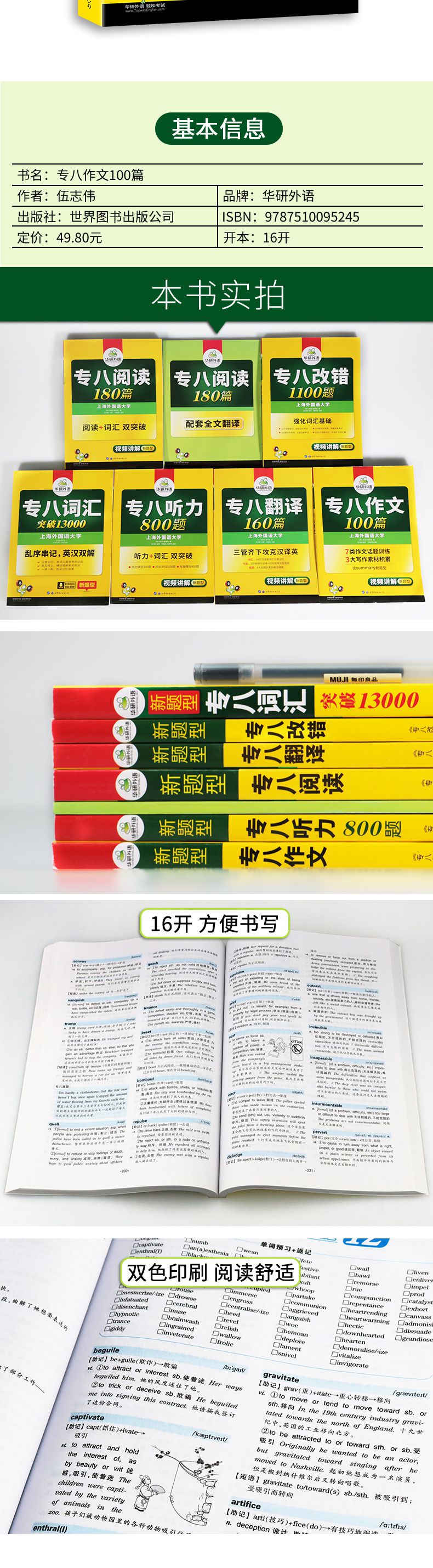 专八系列 共6册 出版时间 2017-05-01T00:00 英语专业八级 53510 作者: 华研外语 出版社: 世界图书出版公司 原售价: 318.80 折扣价: 143.46 折扣购买: 专八系列 共6册 ISBN: 9787510095191 作者简介 内容简介 上一篇:英语专业8级写作(第2版)/冲击波英语下一篇:新东方 专八词汇词根+联想记忆法 乱序版