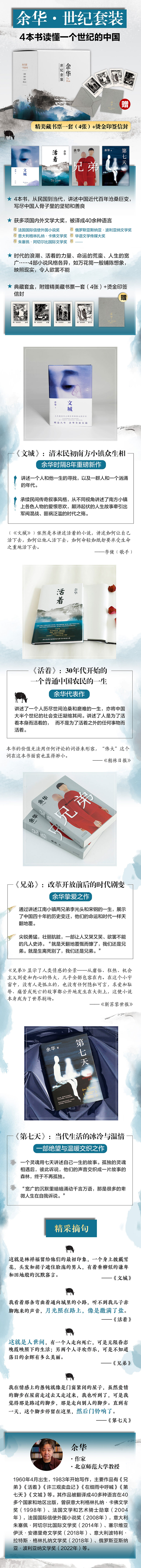 折扣购买: 余华:世纪套装(《文城》《活着》《兄弟》《第七天》,四本书读懂一个世纪的中国)