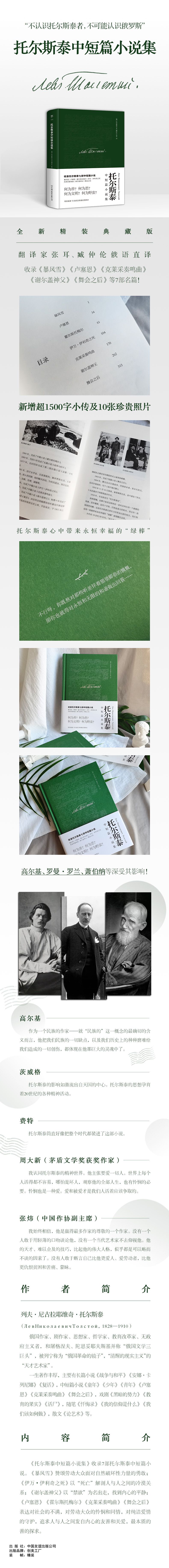 列夫·尼古拉耶维奇·托尔斯泰(Лев Николаевич Толстой,1828—1910),俄国作家、剧作家、思想家、哲学家、教育改革家、无政府主义者。和屠格涅夫、陀思妥耶夫斯基并称“俄国文学三巨头”,被列宁称为“俄国革命的镜子”,“清醒的现实主义”的“天才艺术家”。 出生贵族家庭,一岁半丧母,九岁丧父,由姑妈抚养成人。十六岁考入喀山大学法律系,后退学回乡,投身农奴制度改革。二十三岁时自愿参军,在高加索服役并开始写作。三十四岁时和索菲娅结婚,共育有十三个孩子,其中五个天折。 四十一岁时,历时六年完成《战争与和平》。四十九岁时,历经十二次修改完成《安娜?卡列尼娜》。此后举家迁往莫斯科,调查贫民,探访监狱,研习哲学、宗教、伦理、道德,摒弃贵族生活,亲自收拾屋子、打水、劈柴。七十一岁时,耗费十年完成《复活》。 一九一零年十一月,秘密离家出走,途中患肺炎,死于阿斯塔波沃车站。依照遗嘱,葬于故居亚斯纳亚·波利亚纳庄园,没有十字架,没有墓碑。 一生著作丰厚,主要有长篇小说《战争与和平》《安娜·卡列尼娜》《复活》,中短篇小说《童年》《少年》《青年》《卢塞恩》《克莱采奏鸣曲》《舞会之后》,戏剧《黑暗的势力》《教育的果实》《活尸》,随笔《忏悔录》《我的信仰是什么》《我们该如何做》,散文《论艺术》等。
