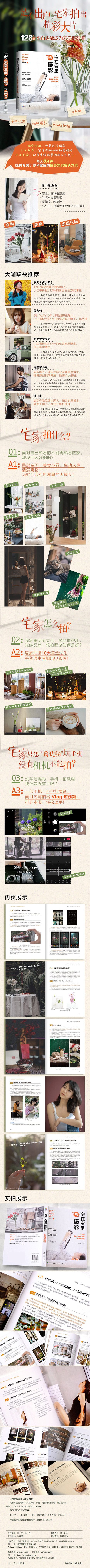 古有曹植七步做诗,对于摄影人而言,其实五步也可以寻拍出美景的,因为五步之内,也可以拍远景、中景,或近景、特写,关键是需要一双发现美的眼睛,这就是我们平常所说的摄影眼力,因此如何培养眼力,具体怎么拍?拍什么?便是这本书的重点。 这本书汇聚了瞳小瞳chris多年的居家拍摄经验,在此,我为大家提炼11 个重点: 第1,书的前面就分享干货,和大家分享了居家拍摄的10 大黄金法则,帮助大家如何将普通生活拍出电影大片感。 第二,在家庭的偏弱光环境下,如何调整曝光,如何对焦,如何设置光圈、快门、感光度等,进行了详细的解说。 第三,在熟悉的家庭环境里,如何进行客厅、餐厅、卧室、书房、厨房、阳台等不同场景的创造性拍摄? 第四,在较小的空间场景里,如何进行构图?以及如何呈现独特的视角?让你的照片大放异彩。 第五,介绍了在室内环境中,如何运用5 种自然光、3 种人造光,以及3 种对比色,拍出不一样的光影与色彩作品。 第六,合理利用居家空间的4 种几何形态:直线型空间、流线型空间、块面型空间、组合型空间,进行有效拍摄。 第七,充分运用绿植、花卉、桌面、墙面、玻璃、镜子、书本、器皿、布艺、家具等静物元素,进行组合,拍摄不一样的精致。 第八,美食是家中的拍摄重点,水果、蔬菜、面点、饮品,以及菜肴与餐具,都可以有技巧式拍摄,化平常为精彩。 第九,如何在家中拍摄人像,如何利用窗户的光线,如何拍摄人像半身、全身、侧身等不同的照片,拍出故事感。 第十,全民Vlog 时代,如何拍摄自己的家居Vlog 短片,并添加滤镜、转场字幕、背景音乐等,书中均有介绍。 第十一,后期如何处理?作者既介绍了电脑PS 专业后期,也介绍了手机 APP 的快捷处理,特别是景深、胶片、海报效果的制作方法。 希望通过本书,帮助大家成为记录生活的大师。将每一个转瞬即逝的精彩瞬间,提炼成为永不褪色的经典影像。