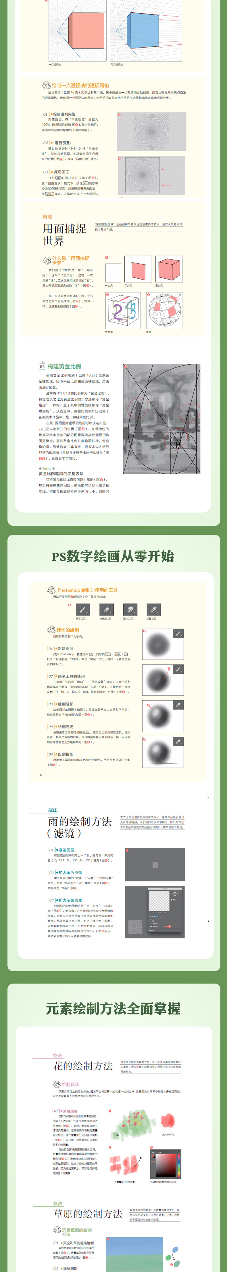 10个风格各异的场景原画绘制全流程案例讲解,例如草原、蓝天、花园、城市、峭壁、森林、宫殿、废都、机械、街道等,涉及的场景领域广泛。 20个数字插画绘制技巧解读,不仅涉及透视法、构图等基础知识,还包括草原、天空、花、雨、雪、树木、森林、山峰等元素的绘制详解,帮助读者全面夯实绘制基础。