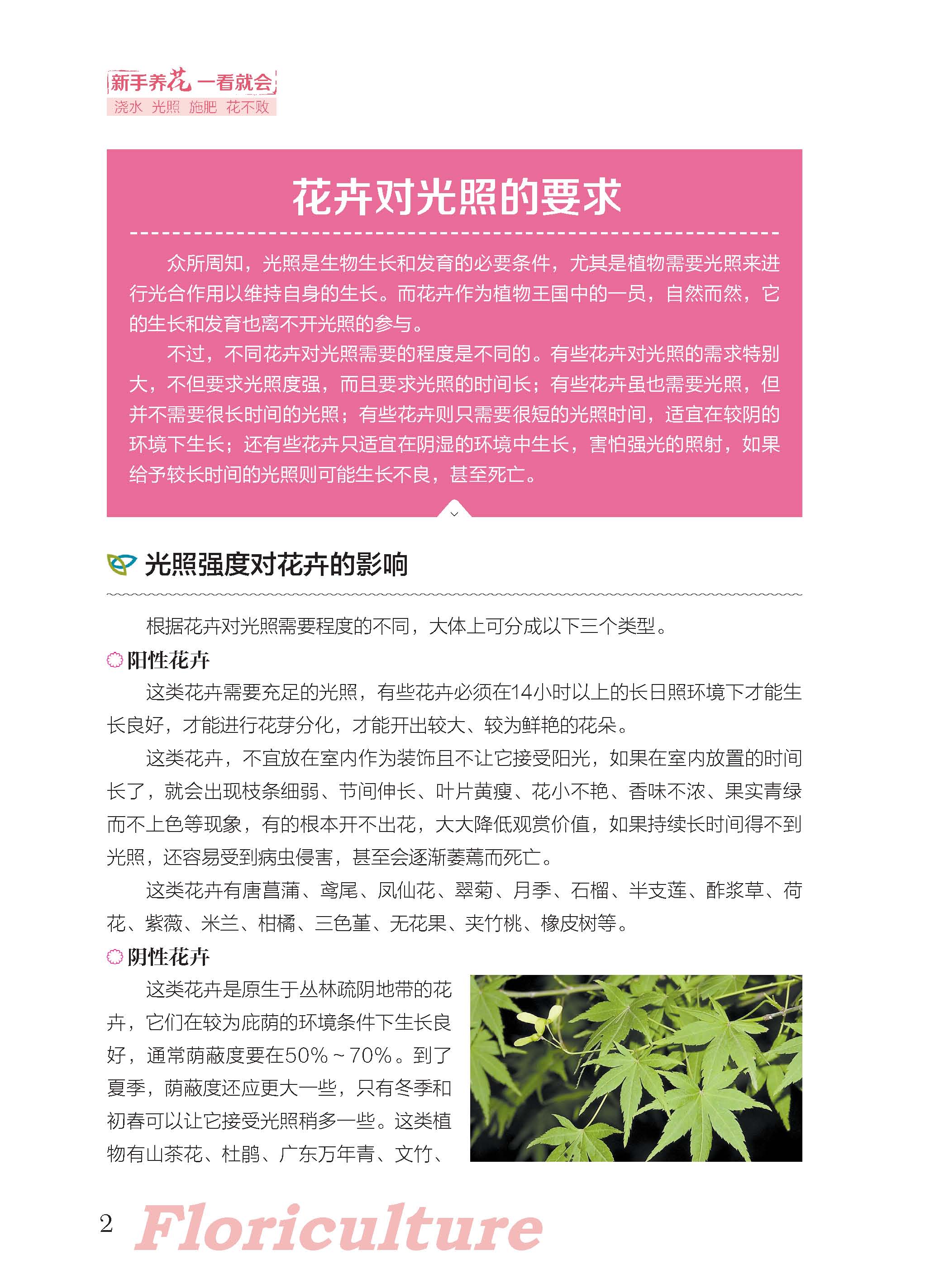 怎样为花选择生长环境?买花时如何鉴别、挑选?应该多长时间为花浇一次水? 给花换盆、上盆时有哪些注意事项?出现病虫害时如何进行处理?…… 为你提供各种养花技巧,就可以养育出枝繁叶茂、生机勃勃的花卉! 一本花色繁多品种齐全的图鉴宝典,全彩印刷,配有百余张精美图片,令人在赏心悦目的同时对操作一目了然。轻松享受养花乐趣的,一本即可以养花、又可赏花的花卉全书。