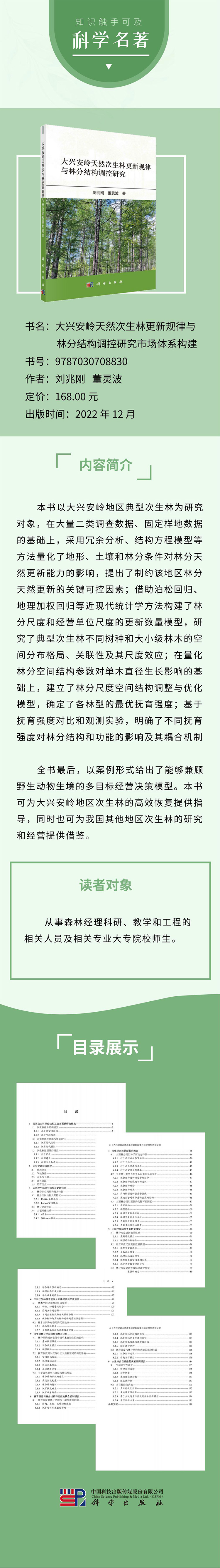 大兴安岭天然次生林更新规律与林分结构调控研究 出版时间 2022-12-01T00:00 农业科学 49310 作者: 刘兆刚//董灵波|责编:张会格//田明霞 出版社: 科学 原售价: 168.00 折扣价: 132.80 折扣购买: 大兴安岭天然次生林更新规律与林分结构调控研究 ISBN: 9787030708830 作者简介 内容简介 上一篇:现代农业园区规划原理与实务下一篇:啤酒生产工艺与技术/酒类工艺与技术丛书