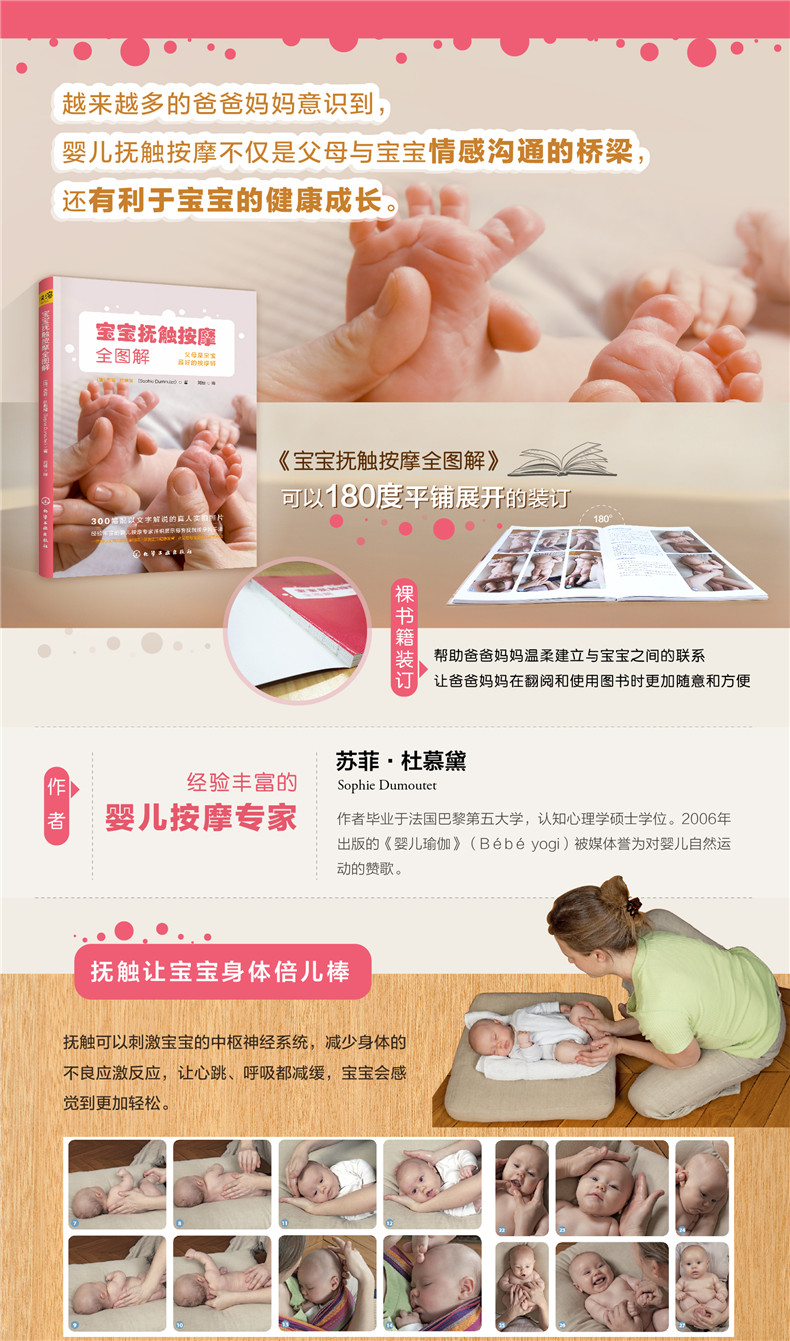 宝宝抚触按摩全图解 出版时间 2017-03-01T00:00 现代言情 37999 作者: (法)苏菲·杜慕黛|译者:刘佳 出版社: 化学工业 原售价: 39.80 折扣价: 26.30 折扣购买: 宝宝抚触按摩全图解 ISBN: 9787122283726 作者简介 苏菲·杜慕黛,毕业于法国巴黎第五大学。凭借其硕士论文《新生儿的触觉认知》,取得认知心理学硕士学位。2006年出版的《婴儿瑜伽》被誉为对婴儿自然运动的赞歌。10年来,作者充满喜悦地将宝宝抚触按摩的知识教授给年轻的父母们,让无数宝宝与家庭*加幸福安康。 内容简介 上一篇:自由教育的哲学(如何进行创造性学习)/夏洛特·梅森家庭教育经典下一篇:哈佛大学青少气质课/哈佛大学青少课系列