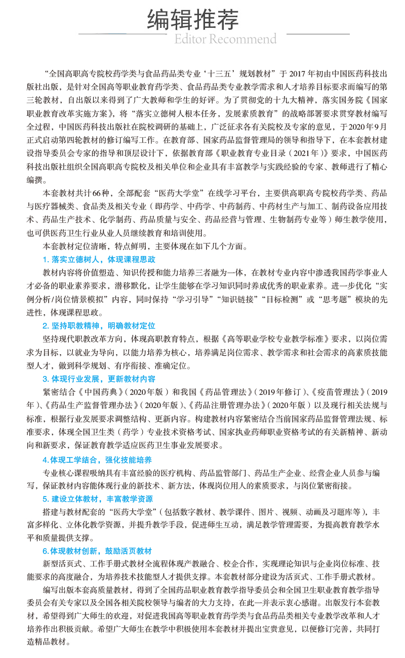 中药鉴定技术(供中药学专业用第4版全国高职高专院校药学类与食品药品类专业十四五规划 出版时间 2021-08-01T00:00 其他类别 83546 作者: 编者:姚荣林//李林岚|责编:赵敏//卜琦鑫 出版社: 中国医药科技 原售价: 69.00 折扣价: 58.70 折扣购买: 中药鉴定技术(供中药学专业用第4版全国高职高专院校药学类与食品药品类专业十四五规划 ISBN: 9787521425796 作者简介 内容简介 上一篇:古典名著全本注译文库:世说新语下一篇:政府会计(普通高等学校应用型教材·会计与财务)