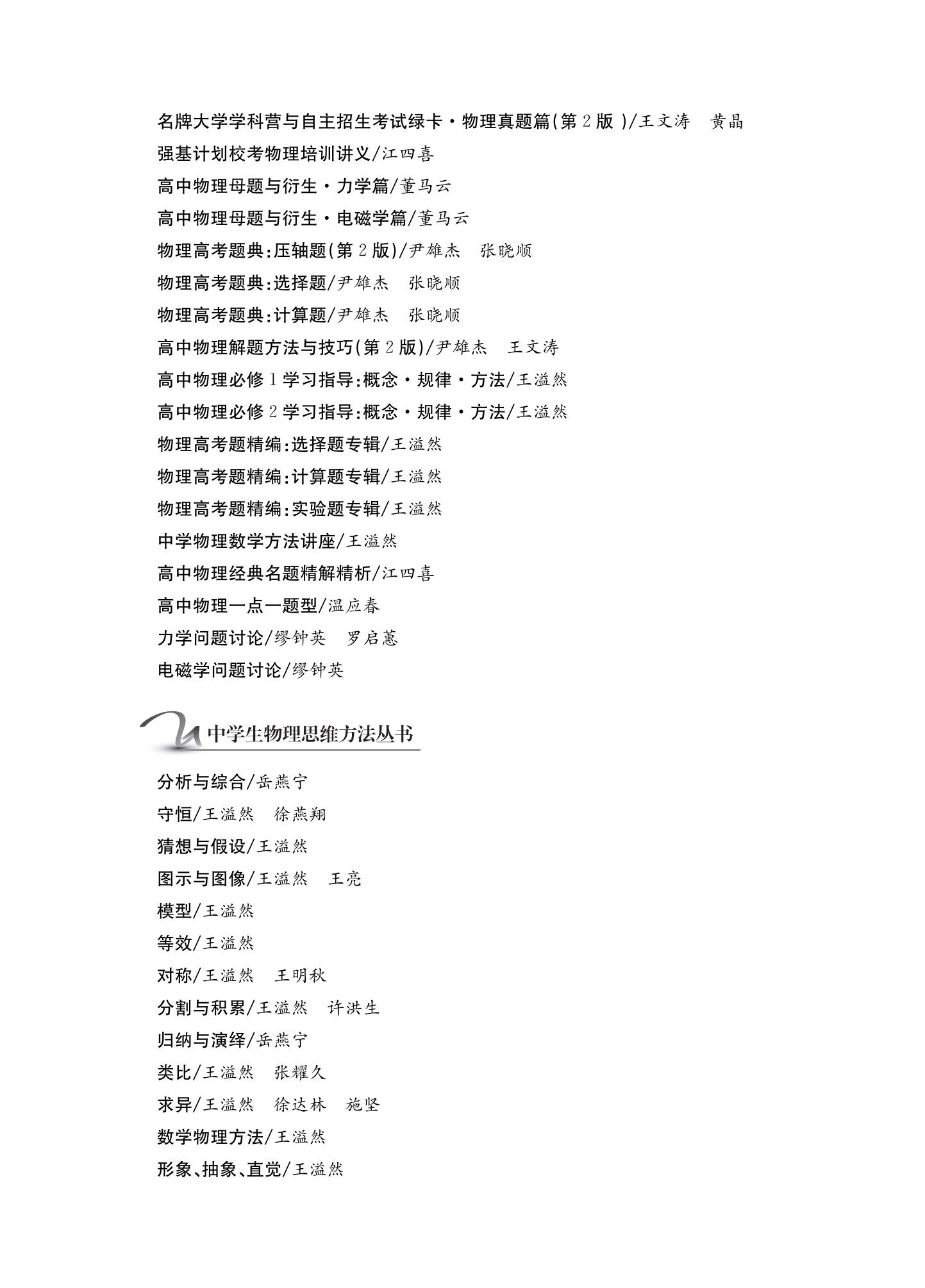 舒幼生,北京大学物理系教授(退休),曾任北京大学普通物理教研室主任,多次担任IPhO(国际中学生物理奥林匹克竞赛)中国代表团的领队兼主教练,曾为历届北京大学物理学院的学生讲授第一堂物理课。主要著作有《奥林匹克物理》《物理学难题集萃(上、下册)》《奥赛物理辅导教程.力学篇》等。