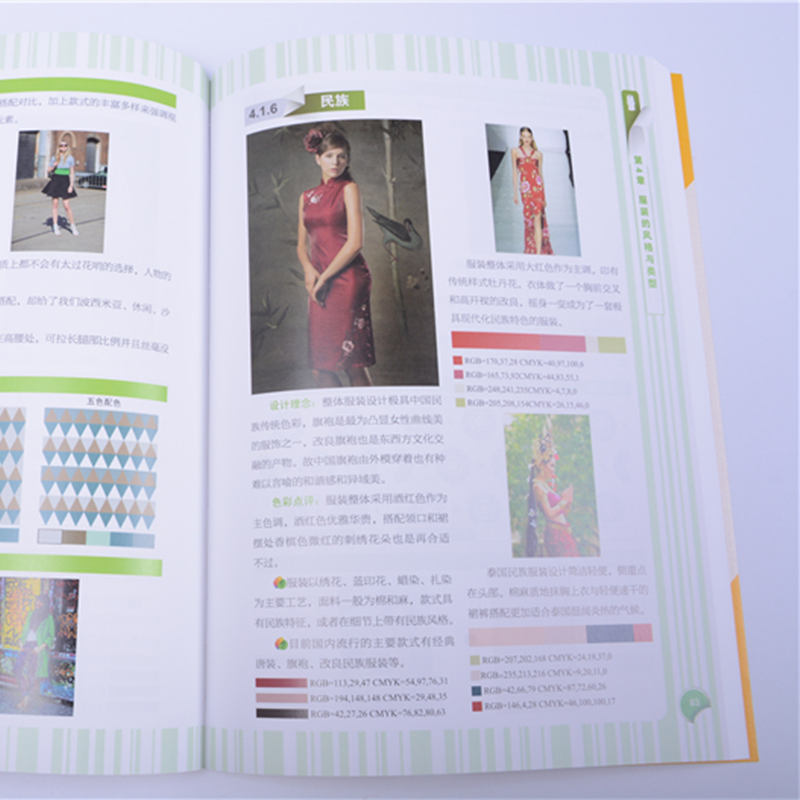 第4章 服装的风格和类型 服装风格反映了一个时代的流行趋向或是民族的经典传承,再或是个人的价值取向、精神追求。多种多样的服装类型是人类对美的不懈追求的精神产物,变幻莫测的服装风格则凸显出设计师特立独行的设计理念和对完美的追求,体现出鲜明独特的时代特征。 ◆ 服装根据季节的变换而变换,不同季节穿搭不同类型的衣物会起到很好的散热或保暖作用,不同类型的衣物也让我们平淡乏味的日常生活变得多姿多彩。 ◆ 服装风格多种多样,不同年龄、不同品味的人只有穿着适合自己风格的服装才能将自身优点放大化并表现出来。 4.1 服装风格 服装风格是指不同种类、样式的服装在形式和内容方面所体现出来的价值理念、内在品味和艺术共鸣。服装设计的重点在于对于服装定义的风格和鉴赏,服装风格体现了设计师独特的创作思维,对美的认知,也凸显出强烈的现代化特征。 服装风格一贯遵循传统、敏锐的眼光,保留传统却以与众不同的形象示人,完美演绎着特立独行的个性。各种各样的轮廓造型,考究的细部处理,缤纷的色彩搭配,展现出鲜明的特点,寻求独特而平衡的美,是服装风格遵从的真理。 服装风格的魅力在于发掘自身的优点。设计师的创意与实用主义,融合艺术美学风格,创作出出彩又富有内涵的调配。传达出充满质感的生活品味, 在职场和生活中展现出精明干练的同时又能兼顾流行。 按种类繁多的服装风格划分又分为十几种:瑞丽、嬉皮、百搭、淑女、韩版、民族、欧美、学院、OL、中性、田园、朋克、洛丽塔、简约、通勤等。 4.1.1 瑞丽 设计理念:瑞丽的主要风格是以甜美优雅深入人心。服装整体设计灵感来源于天鹅,既有着翩翩起舞的轻盈感又有着少女般的青涩可爱。 色彩点评:水蓝色纱质蕾丝公主裙与西瓜红色高跟凉鞋形成强烈的视觉对比。在体验水蓝色带来柔和感同时,红色高跟鞋如同树枝上轻颤的樱桃点缀其间,晶莹剔透。 服装上身选用欧根纱透视材质,与裙摆处厚纱材质各不相同,丰富了层次,却没有过于厚重的感觉。 曲线鲜明的蓝色外套和及膝的蓝色裙子搭配,会透出一种轻盈的妩媚气息。 蓝白红搭配是视觉最美的效果。用补色的对比色搭配或过渡色搭配会让人感觉舒缓,不会有视觉跳跃之感。 RGB=99,154,167 CMYK=65,31,33,0 RGB=180,202,233 CMYK=34,17,3,0 RGB=283,132,163 CMYK=8,62,13,0 RGB=176,4,21 CMYK=38,100,100,4 服装整体配色清新和谐,给人以置身街头的即视感,充分符合瑞丽的可爱浪漫风格。 RGB=239,239,231 CMYK=8,6,11,0 RGB=46,97,147 CMYK=83,61,23,0 RGB=99,27,20 CMYK=54,95,100,42 服装整体配色温馨淡雅,着装和细节每一处都透露着浓厚的日系风情,甜美可人。 RGB=245,241,241,0 CMYK=5,6,5,0 RGB=131,136,160 CMYK=56,48,28,0 RGB=114,58,60 CMYK=56,83,71,52 #瑞丽风格#服装色彩搭配应用技巧 瑞丽原为日本著名的时尚杂志,受众人群主要以学生和年轻白领为主。总体来说瑞丽风格主要以甜美优雅、青春可爱深入人心。 ◆ 左图服装上衣采用纯棉质地宽松露脐衬衣,下身为一条亮红色百褶裙,整体搭配优雅明快。 ◆ 右图服装整体设计为浅米色背心款蕾丝雪纺长裙,给人以清新淡雅,超凡脱俗之感。 ◆ 瑞丽风格穿搭,时而柔情似水,时而热情如火。但在衣着裁剪上都保有着传统观念,不会做较大的改动。故给人以清新甜美,却不老旧保守的印象。 配色方案 双色配色 三色配色 五色配色 瑞丽风格设计赏析 4.1.2 嬉皮 设计理念:服装整体设计灵感来源于20世纪60年代Hippy流行文化。嬉皮风为青年人宣誓自己对现代生活态度的理解,偏爱个性十足的服饰与发饰。整体设计既有现代元素,又隐含古着风。 色彩点评:蓝红色棉麻质地磨边衬衫上衣,搭配深蓝色磨边牛仔裤相得益彰,色彩搭配和谐,在凸显个性的同时也不会显得太过浮夸。 采用棉麻质地更加符合服装整体的设计风格,以一种非唯物主义的生活方式,给人特立独行的直观感受。 红色和蓝色,属于三原色中的两种色,只要搭配合理绝对可以拒绝平庸,令人眼前一亮。 RGB=23,36,84 CMYK=100,99,52,20 RGB=230,66,56 CMYK=11,83,70,0 RGB=21,38,84 CMYK=100,97,52,20 RGB=14,13,21CMYK=90,87,78,71 服装整体颜色多种多样,并没有给人杂乱无章的感觉,反而给人以强烈的青春叛逆气息,整体配色和谐。 RGB=223,211,219CMYK=15,19,9,0 RGB=162,185,194CMYK=42,22,21,0 RGB=211,220,162CMYK=24,9,44,0 RGB=231,148,159CMYK=11,53,26,04 整体设计采用貂皮马甲、镭射面料短裙、喷墨花式裤子、荧光黄色高跟鞋等多种元素,诠释出属于嬉皮的独特魅力。 RGB=0,0,0CMYK=93,88,89,80 RGB=165,136,106 CMYK=43,49,60,0 RGB=233,228,224 CMYK=11,11,11,0 RGB=17,6,42 CMYK=97,100,66,55 RGB=241,55,52 CMYK=4,90,77,0 RGB=244,232,58 CMYK=12,7,81,0 #嬉皮风格#服装色彩搭配应用技巧 嬉皮士的着装风格是:古旧、颜色大胆,给人以放荡不羁、破旧陈乱的直观感受。现代许多年轻人热衷并追随这种风格。 ◆ 左图服装外套为嵌满铆钉的皮质风衣夹克,内搭黑色烫绒材质连衣裙,夸张式的金属项链与金属质地宽腰带烘托出鲜明的个性,率性且豪放不羁。 ◆ 右图服装设计整体以深蓝色牛仔材质为主体,内搭为透明纱质衬衫,下身为手工刺绣星球图案紧身短裙,整体设计大胆创新,打破了人们对牛仔古老保守的印象。 ◆ 嬉皮士因为追求爱,所以也追求美好的事物,尤其以花为主。 配色方案 双色配色 三色配色 五色配色 嘻皮风格设计赏析 4.1.3 百搭 设计理念:服装上衣和外套都是采用最为
