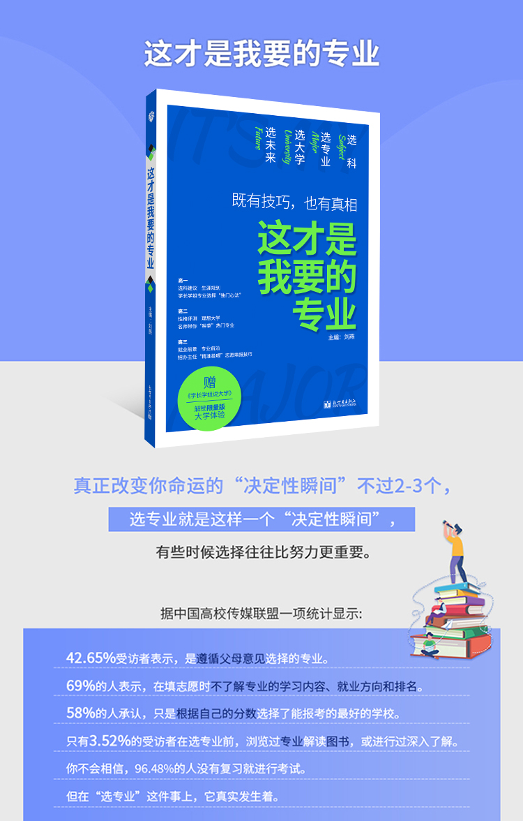 2022新 这才是我要的专业 出版时间 2021-02-01T00:00 填报志愿 1381 作者: 编者:刘燕|责编:王峻峰 出版社: 新世界 原售价: 69.80 折扣价: 55.84 折扣购买: 2022新 这才是我要的专业 ISBN: 9787510472503 作者简介 内容简介 上一篇:2022年 全国重点大学报考指南下一篇:2023-2024年疯狂阅读 下一站大学2 学长帮你选专业