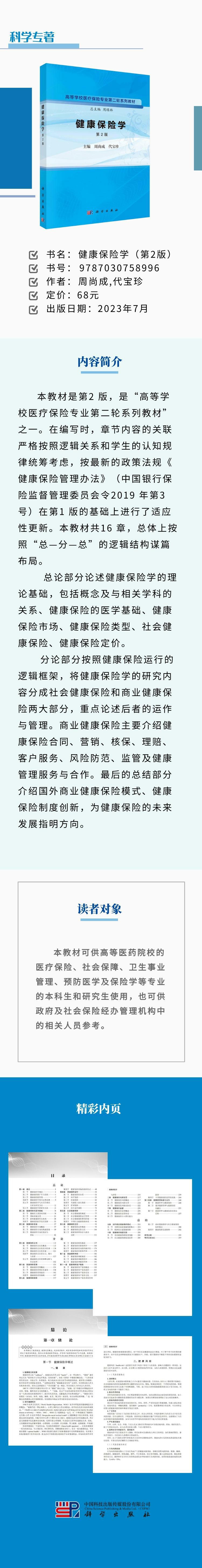 健康保险学(第2版) 出版时间 2023-07-01T00:00 其他类别 7995 作者: 周尚成,代宝珍 出版社: 科学 原售价: 68.00 折扣价: 51.70 折扣购买: 健康保险学(第2版) ISBN: 9787030758996 作者简介 内容简介 上一篇:中国传统康复技术实训指导(供康复治疗技术专业用第2版全国高职高专院校教材)下一篇:病原生物与免疫学(供药学类食品类药品与医疗器械类专业用第2版全国高职高专院校药学类