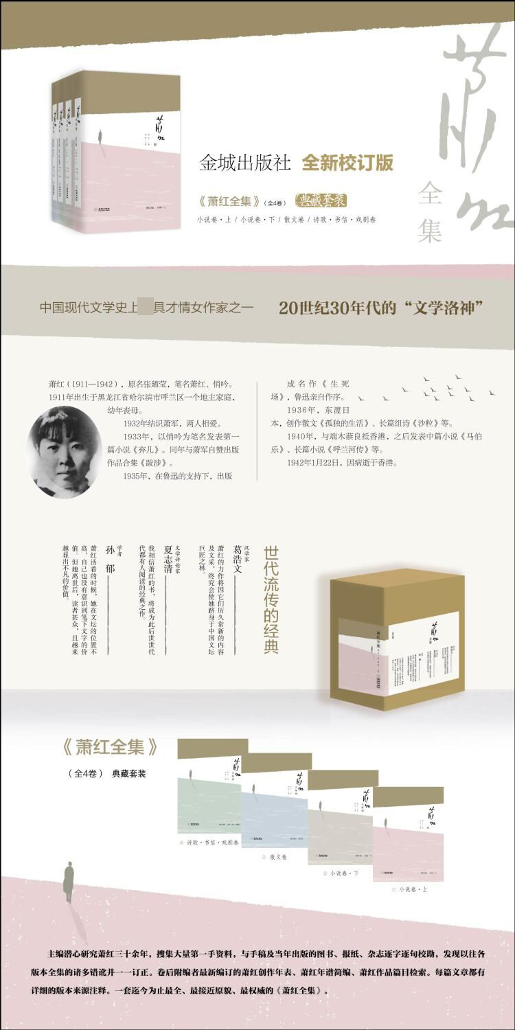 萧红(1911—1942),中国近现代女作家,原名张廼莹,笔名萧红、悄吟。1911年出生于黑龙江省哈尔滨市呼兰区一个地主家庭,幼年丧母。1932年结识萧军,两人相爱。1933年,以悄吟为笔名发表第一篇小说《弃儿》。同年与萧军自赞出版作品合集《跋涉》。1935年,在鲁迅的支持下,出版成名作《生死场》,鲁迅亲自作序。1936年,东渡日本,创作散文《孤独的生活》、长篇组诗《沙粒》等。1940年,与端木蕻良抵香港,之后发表中篇小说《马伯乐》、长篇小说《呼兰河传》等。1942年1月22日,因病逝于香港。 袁权,祖籍山东,现居北京。研究萧红三十余年,作为萧红的超级粉丝,数十年来遍访作家生前所居留过的每个城市,探寻其足迹。多年潜心研读中国近现代文史资料,并有相关论文发表。著有《萧红全传——从呼兰河到浅水湾》《萧红与鲁迅》等作品,前者由中国人民大学文学院院长、鲁迅研究专家、著名学者孙郁作序,中国青年出版社2011年出版。