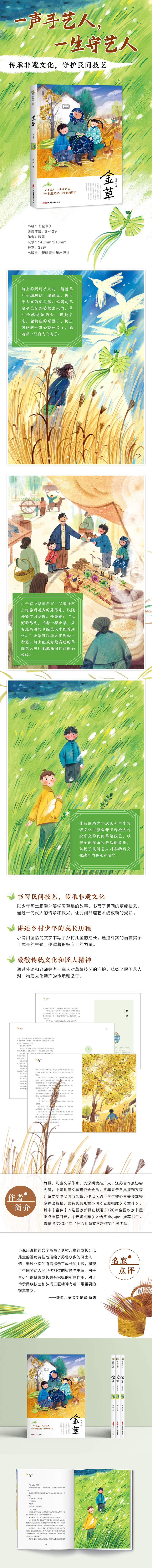 1.书写民间技艺,传承非遗文化。以少年阿土跟随外婆学习草编的故事,书写了民间的草编技艺。通过一代代人的传承和振兴,让民间非遗艺术绽放新的光彩。 2.讲述乡村少年的成长历程。小说用温情的文字书写了乡村儿童的成长,通过朴实的语言揭示了成长的主题,蕴藏着积极向上的力量。 3.致敬传统文化和匠人精神。通过外婆和老郝等老一辈人对草编技艺的守护,弘扬了民间艺人对非物质文化遗产的传承和坚守。 4.人物形象的塑造鲜活丰满。有的是通过心理描写,有的是通过侧面烘托,还有的是通过人物语言,但每个人物都是血肉丰满,颇具真实感。 5.语言唯美,内涵丰富。在作者的笔下,一草一叶、一花一树,仿佛都跃动着一种诗意和灵性,饱含着作家对自然万物的包容。