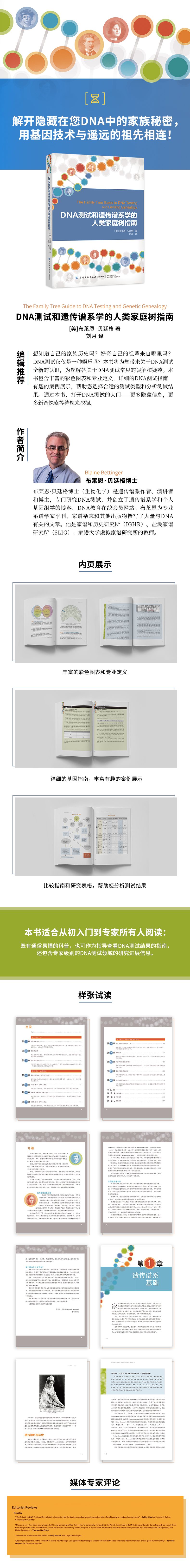 DNA测试和遗传谱系学的人类家庭树指南 出版时间 2022-07-01T00:00 遗传学 672 作者: (美)布莱恩·贝廷格|责编:毕仕林//闫婷|译者:刘月 出版社: 中国纺织 原售价: 158.00 折扣价: 107.44 折扣购买: DNA测试和遗传谱系学的人类家庭树指南 ISBN: 9787518094004 作者简介 布莱恩·贝廷格博士,基因学专家,The Genetic Genealogist 博客作家,The Genetic Genealogist 是首批针对基因学的博客之一,基因历史研究所、盐湖基因研究所、匹兹堡基因研究所、虚拟基因学研究所的基因学讲师。 内容简介 上一篇:医学遗传学(翻译版)下一篇:遗传学实验(第2版普通高等教育十三五规划教材)