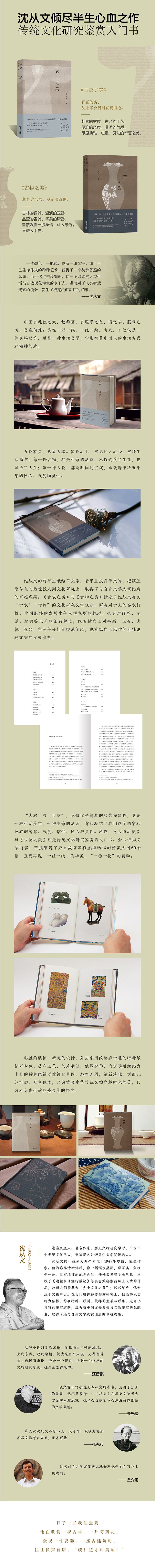\"古代人的穿衣打扮 古代人穿衣服事情,我们过去所知并不多,文献上虽留下许多记载,只因*子太久,引书证书,辗转附会,越来越不易清楚了。幸亏近年考古学家的努力,从地下挖出了大量古文物,可作参考比较,我们才得到新的认识。 由商到西周、春秋、战国,前后约一千年,大致可以分作三个历史阶段看它的演变。较早时期,除特殊人物在特种情形下的衣服式样,我们还不大明确,至于一般统治者和奴隶,衣长齐膝似乎是一种通例。由此得知,汉代石刻做的大禹像和几个历**名王名臣像,倒还有些古意,非**出于猜想。因为至少三千年前的商代人,就多是这个样子了。当时人已穿裤子,比后人说的也早过一千年。商代人衣服材料主要是皮革、丝、麻。由于纺织术的进展,丝、麻已占特别重要地位,奴隶主和贵族,平时常穿彩色丝绸衣服,还加上种种织绣花纹,用个宽宽的花带子束腰。奴隶或平民,则穿本色布衣或粗毛布衣。贵族男子头上已常戴帽子,是平顶筒子式,用丝绸做成,直流行到春秋战国不废。女人有把发上拢成髻,横贯一支骨簪的;也有用骨或玉做成双笄,**雕刻个寸来大小鸟形(鸳鸯或凤凰)两两相对,斜插头顶两侧,下垂卷发齐肩,颈项上挂一串杂色闪光玉石珠管串饰。历****的美人妲己当时大致就应这么打扮。女子成年才加笄,所以称“及笄”,表示可以成婚。小孩子已有头顶上梳两个小角儿习惯,较大的可能还是编辫发。平民或奴隶有裹巾子作羊角旋斜盘向上的,有包头以后再平搭折成一方角的,还有其他好些样式,都反映在玉、铜、陶人形俑上。样子多和现在西南居住的苗、瑶族情形差不多(这不是偶然巧合,事实上很多三千年前古代图案花纹还可从西南兄弟民族编织物上发现)。许多野生植物如槐花、栀子、橡斗已用来做染料,并且还种植了蓝*,能染出各种不同的青蓝色,种茜*和紫*专染红、紫诸色。 历**称周公制礼,衣分等级和不同用场,就是其中一项看得十分重要的事情。衣服*益宽大,穿的人也*益增多,并且当成一种新的制度看待,等级分明大致是从西周开始。统治者当时除大量占有奴隶外,还向所有平民征税,成丁人口每年必贡布二匹和一定粮食,布匹织得不合规格的不许出卖也不能纳税,聚敛*多,才能穿上宽袍大袖的衣服坐而论道。帝王和大臣,为表示尊贵和威严,祭天礼地和婚丧大事,袍服必*加庄严且照需要分别不同颜色,有些文献还提起过,天子出行也得按时令定方向,穿上不同颜色衣服,备上相当颜色车马,一切都得相互配合。皮毛衣服也按等级穿,不能逾越制度。即或是猎户猎得的珍贵狐、獭、貂、鼠,也得全部贡献给统治者,私下不许随便使用或出卖。照周代制度,七十岁以上老百姓,可以穿丝绸和吃肉,但是能照制度得到好处的人事实不会多。至于一般百姓,自然还是只能穿本色麻布或粗毛布衣服,极贫困的就只好穿那种*编的“牛衣”了。 衣到西周以后变动虽大,有些方面却又不大。比如作战时武将头上戴的铜盔,从商到战国,就相差不多。甲的品种已加多了些,有犀甲、合甲、练甲,后来还发明了铁甲,*讲究贵重的是犀甲,用犀牛皮做成,上面用彩漆画出种种花纹。因为兼并战争越来越多,**也越来越精利,且有新**剑和弩机出现,甲不坚实就不抵用,“坚甲利兵”的话就由此而来。矛既十分锋利,盾也**结实。 照周初制度,当时把全国分划成许许多多大小不等的邦国,每一个地方设一统治者,用三种特殊身份的人去担任:一是王族子弟,如召伯封于燕、周公父子封于鲁;二是有功于**的大臣,如姜尚封于齐、熊绎封于楚;三是前代王朝子孙。这些人赴任时,除了照例可得许多奴隶,还可得一些美丽的玉器,一份精美讲究的青铜祭器和*用饮食器,以及一些专作压迫人民工具的青铜**,以壮观瞻的车马旗帜,另外就是那份代表阶级身份的华美文绣丝绸衣服。虽然事隔两千多年,好些东西近年都被挖出来了,有的还保存得十分完整。丝绸衣服容易*朽,因之这方面知识也不够全面。但是由于稍晚一些已流行用陶、木作俑代替生人殉葬,又在其他材料中还保存不少形象资料,加以综合分析,比较真实情形,就慢慢地逐渐明白了。\" \" ☆沈从文后半生服饰研究成果之精华,传统文化研究鉴赏的入门读物 ☆一丝一线,蕴含着一个民族的智慧、气质和信仰 ☆古衣,不仅仅是一件民族服饰,*是一种生活美学,它影响着中国人的生活方式和精神气质。 ☆真正的美,从来不会因时间而褪色。朴素的材质,古老的手艺,儒雅的风度,潇洒的气质,尽显典雅、庄重、灵动的华夏之美。 ☆全彩插图,精装典藏:精美装帧,典雅设计,尽显低调奢华;内文配以来自故宫等博物馆的精美大图,实为阅读收藏之佳品。\"