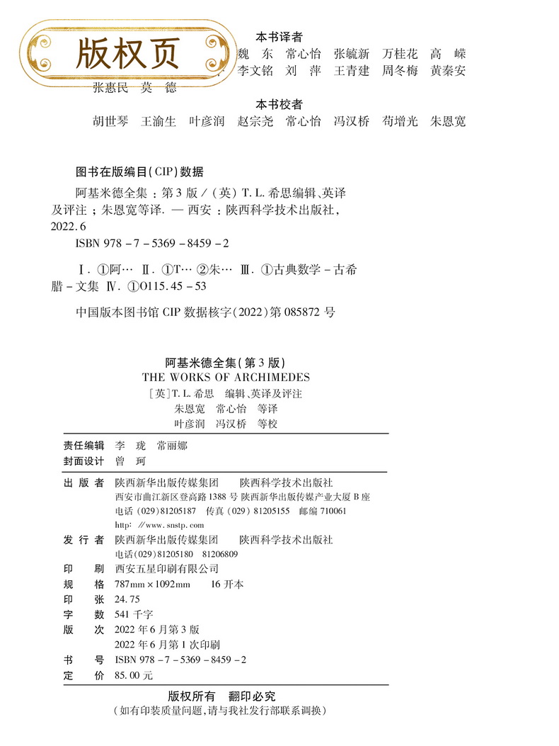 阿基米德全集(第3版) 出版时间 2022-06-01T00:00 数学理论 33369 作者: 朱恩宽 常心怡 译 出版社: 陕西科技 原售价: 85.00 折扣价: 53.60 折扣购买: 阿基米德全集(第3版) ISBN: 9787536984592 作者简介 内容简介 上一篇:当代世界中的数学(数林撷英1)下一篇:高维数据分析中的张量学习理论与算法研究