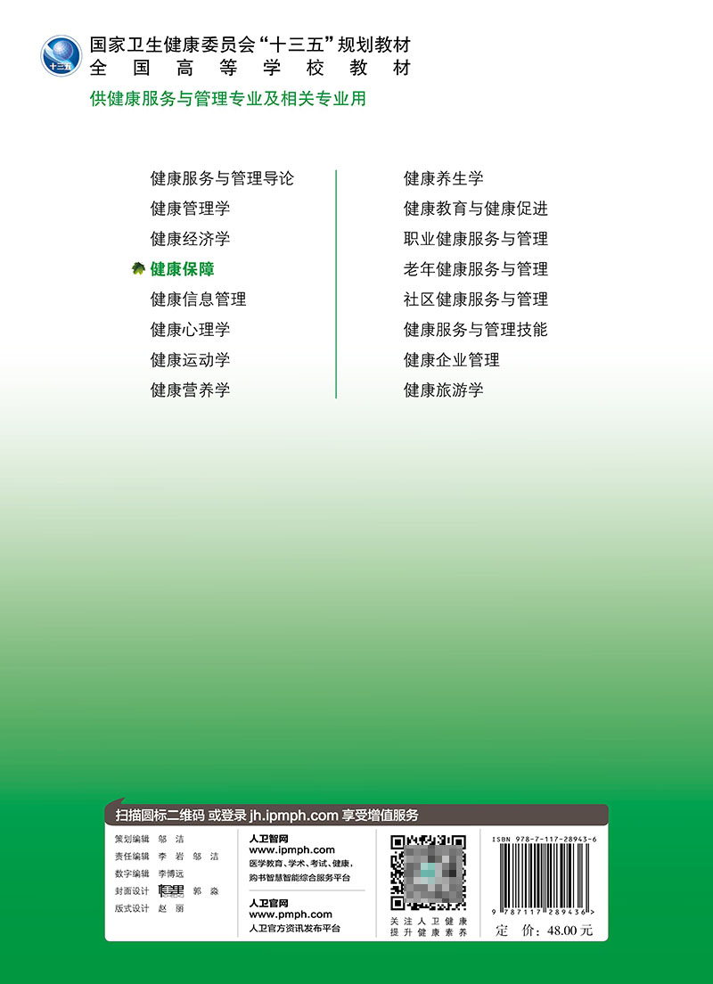折扣购买: 健康保障(供健康服务与管理专业及相关专业用全国高等学校教材)