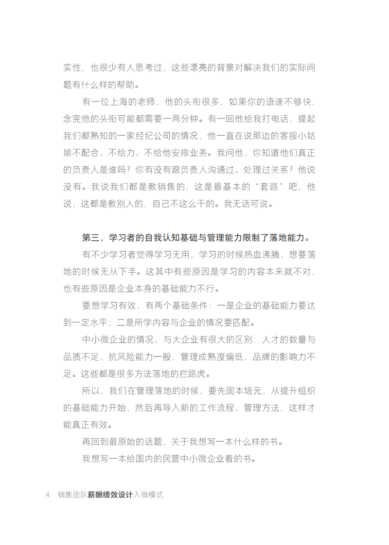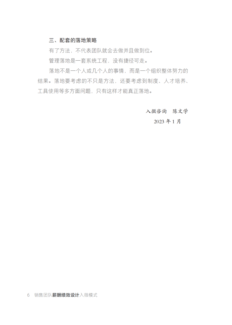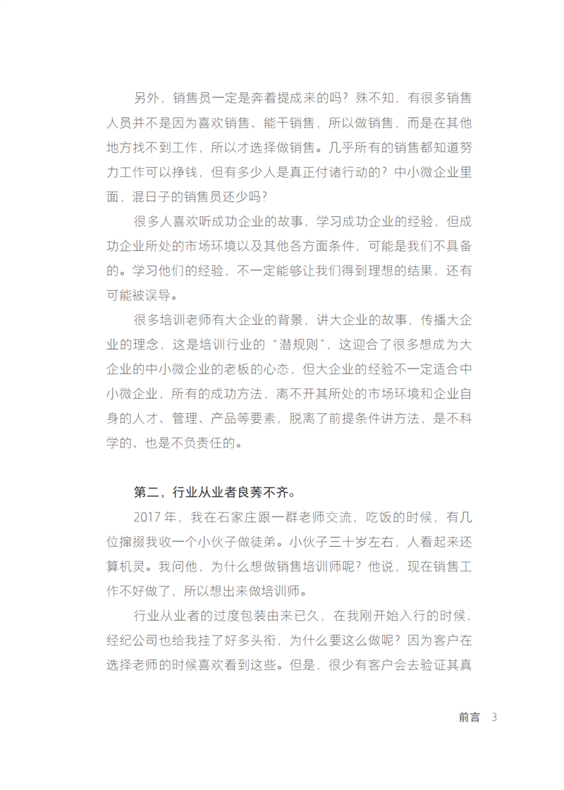 销售团队薪酬绩效设计入微模式 出版时间 2023-05-05T00:00 销售 43420 作者: 陈文学 出版社: 东华大学 原售价: 98.00 折扣价: 65.66 折扣购买: 销售团队薪酬绩效设计入微模式 ISBN: 9787566921871 作者简介 陈文学,入微咨询创始人,销售管理成熟度(SMME)评估创始人,销售管理系统导师;10余年企业营销高管经验,6年专业咨询顾问,13家企业常年营销管理顾问。 陈老师带领的入微咨询团队活跃于营销管理一线,凭借丰富的营销与管理经验,专注销售领域,为企业提供专业化、系统化的解决方案。 内容简介 上一篇:价格波动背景下生猪养殖户生产与销售决策行为研究下一篇:销售口才实战训练(第2版)