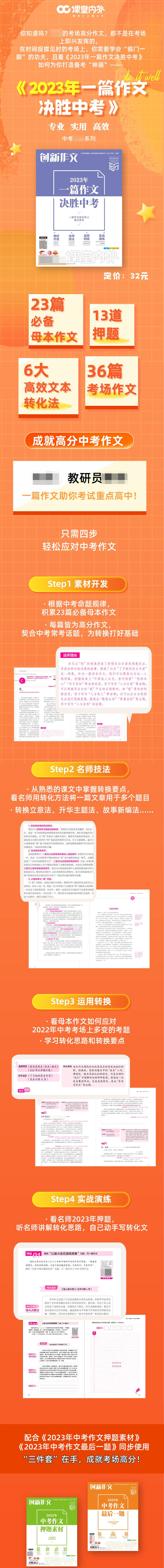 创新作文 2023年一篇作文决胜中考 出版时间 2023-03-01T00:00 中考作文 75149 作者: 安然 主编 出版社: 课堂内外杂志社 原售价: 32.00 折扣价: 19.20 折扣购买: 创新作文 2023年一篇作文决胜中考 ISBN: 977100748822151 作者简介 内容简介 上一篇:5年全国中考满分作文探秘(2022版)下一篇:易佰作文-16开-D4 2023年中考满分作文全解全析