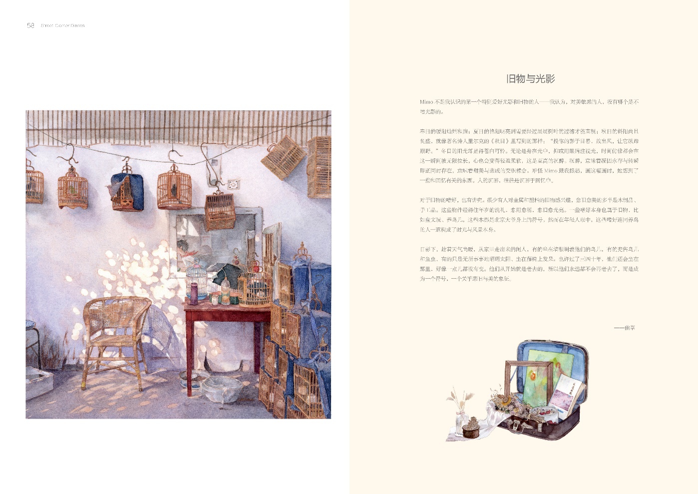 米莫,职业插画师,现居武汉。 曾岀版《绘安静的地方?米莫水彩绘本》并获封2016年海峡两岸“最美图书”,荣获大赛最高荣誉“晶贝壳奖”,曾为作家程玮的《米兰的秘密花园》系列丛书、作家曹文轩的《三角地》及其它文学作品集绘制封面及内文插图;为董宏猷老师《一百个孩子的中国梦》配制部分插画和封面。