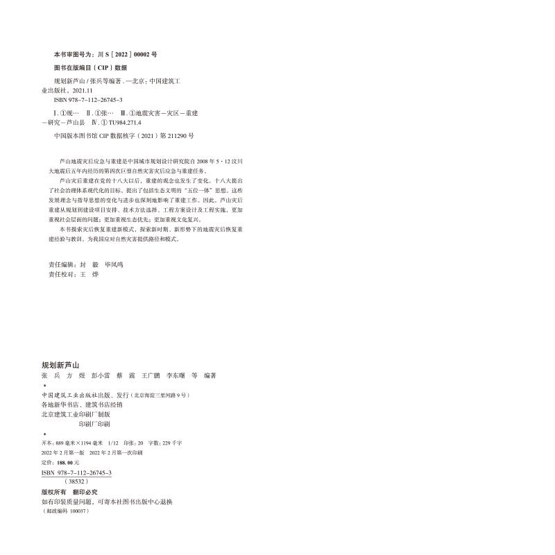 规划新芦山 出版时间 2022-01-01T00:00 规划与设计 76863 作者: 张兵、方煜、彭小雷、蔡震、王广鹏、李东曙 等 出版社: 中国建筑工业 原售价: 188.00 折扣价: 141.00 折扣购买: 规划新芦山 ISBN: 9787112267453 作者简介 内容简介 上一篇:园林手绘效果图表现技法/周海萍下一篇:庭院景观与绿化施工(高等职业教育园林园艺类专业系列教材)