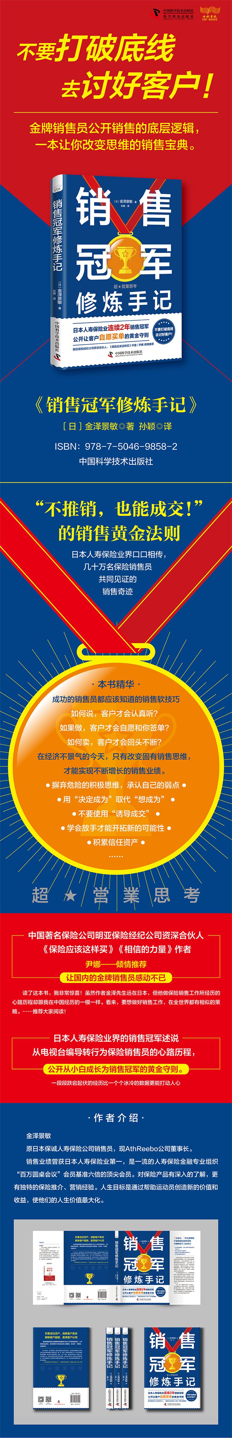 丢掉虚假的自尊心 既然无法避免,就只 能去克服 自尊心受伤,是每个 销售员都要经历的“洗礼 ”。直截了当地说,因为 销售员的地位比购买商 品的客户低,所以销售 员自尊心受伤是无法避 免的。现实中确实会有 明显看不起销售员的客 户,但只能说这是没办 法的事情。 自尊心受伤对任何人 来说都是很痛苦的事情 ,但是,既然无法避免 ,那么我们能做的只有 一件事,那就是去克服 它。如果不能经受住这 种“洗礼”,就无法站在 销售员的起跑线上。 我成为销售员以后, 也经受过强烈的“洗礼” 。这在某种程度上是我 意料之中的。我之所以 离开TBS电视台,不是因 为对电视台不满,而是 因为我明明是靠着电视 台的招牌才受人尊敬的 ,却有种自己好像很了 不起的错觉。当我意识 到这一点以后,觉得这 样很不光彩,所以,我 想通过实行佣金制的保 诚人寿保险公司来证明 自己的实力。 我要成为不是靠公司 的光环,而是靠自己也 能发光的人。虽然失去 了招牌可能会被人看不 起,但我下决心从谷底 爬上来,成为一流的销 售员。 再怎么被否定,也要 让客户购买 然而,现实并没有那 么简单。销售保险一般 是从向亲戚或朋友推销 开始的,我也是一样。 我给在电视台工作时关 ★明亚保险经纪公司资深合伙人、《保险应该这样买》作者尹娜倾情推荐! ★日本人寿保险业销售冠军首次公开销售实战经历,提炼销售中卓有成效的心理策略。原来不用推销,也能成交! ★在经济不景气的今天,每一份工作我们都应该好好珍惜,如果我们离开了光鲜亮丽的行业,没有了公司名牌的加持,我们还能做好工作吗?从日本著名电视台工作人员辞职成为保险销售员,作者告诉你他的成功秘笈。