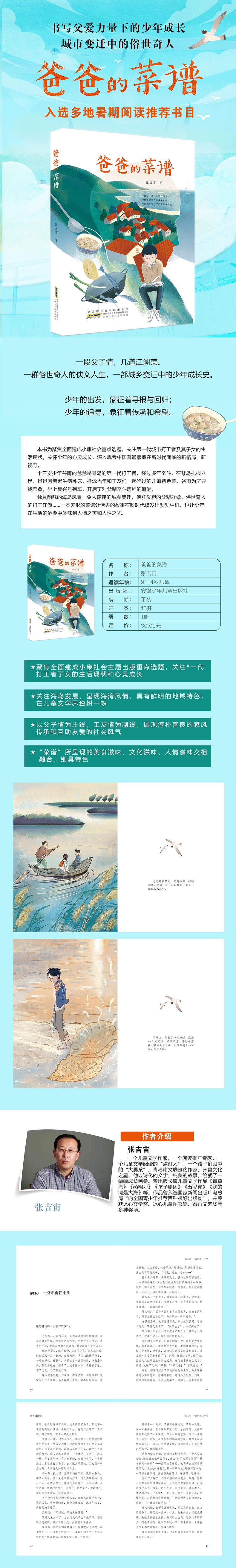 第一章?故事里的菜 五月的黄昏,海风轻轻吹过。 谷雨放学回家,准备给爸爸做饭。 “爸,您想吃点啥?随便点,我一脑袋菜谱,都藏在这下面呢!”他捋了捋额前的刘海儿,习惯性地一甩,很潇洒。 爸爸放下手中的草编:“下雪了吧?” 谷雨一愣:“爸,现在是五月,怎么会下雪呢?” 爸爸笑了:“下了,我闻见香味了。” 谷雨扑到床边,抓住爸爸的手:“爸,您这是怎么了?没事吧?” 爸爸哈哈笑了,扭头看向窗外:“我说的是槐花雪。” 谷雨乐了:“下了,下了,下槐花雪了。爸,我把窗户开大点儿,您好好闻闻,槐花可香了。” 小区里有几十棵槐树,树龄都不短了。这个季节,槐花开满枝头,一簇一簇,白得晃眼,香气袭人,风一摇,花瓣飘落,地上一层雪。 爸爸使劲嗅了嗅:“真香!可惜看不见,槐花都被前面那幢楼挡住了。还是白露家的位置好,开窗就能看见槐花。” 谷雨说:“您还没告诉我呢!想吃啥?” 爸爸刚要开口,手机响了。趁爸爸接电话,谷雨在心里琢磨,怎样才能让爸爸好好吃饭呢? 去年秋天,谷雨刚上初二,爸爸生了一场大病,双下肢瘫痪,从此卧床不起。在和妈妈一起照顾爸爸的日子里,谷雨学会了做饭。他极具天赋,炒得一手好菜,不亚于专业厨师。爸爸就喜欢吃他做的菜,觉得很对口味。 最近,爸爸胃口不好,吃饭不香,日渐消瘦。谷雨就用功研究菜谱,包括研究手机中的美食视频,他想给爸爸做出最可口的饭菜。 爸爸打完电话,拿起一个编好的花篮,冲谷雨晃了晃:“好看吧?跟你说吧,就我这手艺,放下可惜了。这不,现在成废人了,躺在床上,能干点啥?干脆把这手艺拾起来,多编几个小花篮,让你妈拿去插上花儿,摆在店里卖,能多挣不少钱呢!” 爸爸的家乡号称草编之乡、粉坊之乡。那里的许多村庄,一到农闲时节,家家户户不是编草编,就是漏粉条。爸爸的手艺是跟奶奶学的,以前在老家时,他编过草编。 妈妈走过来说:“你爸天生财迷,都这样了,还闲不住,天天编草编,满脑子想挣钱。” 爸爸说:“不挣钱能行吗?不挣钱咱们能住上这么好的房子?虽说买房子的钱不是靠我编草编挣的,但至少有一半是靠我抡大锤砸出来的吧?当然,另一半全靠你。嘿嘿。” 谷雨说:“爸,快告诉我今晚想吃啥?” 爸爸说:“吃啥都行,我又不挑食。再说了,爸爸就爱吃你做的菜,就像洪七公爱吃黄蓉做的菜一样。哈哈。” 家里有部武侠小说《射雕英雄传》,是爸爸的工友长安送给他的,许多年了,书封和内页都泛黄了。爸爸不知看过多少遍,他很喜欢洪七公和黄蓉的故事。谷雨曾发现,爸爸捧着书,不是在看,而是在想。想什么呢?只有他自己知道。爸爸是个重感情的人,喜欢怀旧。 谷雨催爸爸:“咱们先不说洪七公和黄蓉了,快点菜吧!我有的是菜谱。” “我先给你讲个故事吧!” “我现在不想听故事,就想给您做好吃的。” “别急嘛!听我讲,我想吃的菜,就在故事里。” 爸爸向他招招手,谷雨走过去,将爸爸扶起来,拿过一个枕头,垫在他的背后。 “爸,腿麻减轻了吧?” “轻了。” “快好了。” “快了。” 每当这时,父子俩都会有这样的对话,一字不差,仿佛是一种仪式。妈妈说过,人生病了,就应往好处想,多说点吉利话,病自然就好了。 爸爸在讲故事之前,跟妈妈耳语几句,妈妈笑着走出家门。 一段父子情,几道江湖菜。 一群俗世奇人的侠义人生,一部城乡变迁中的少年成长史。 少年的出发,象征着寻根与回归; 少年的追寻,象征着传承和希望。