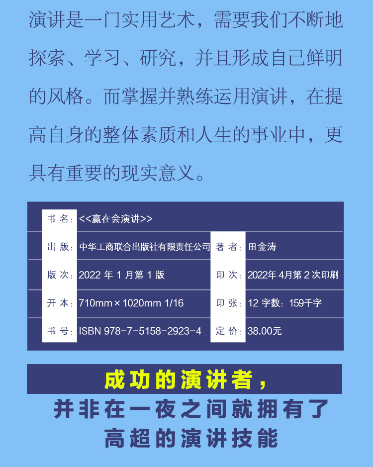 赢在会演讲 出版时间 2023-07-01T00:00 演讲口才 63234 作者: 田金涛 编著 出版社: 工商联 原售价: 38.00 折扣价: 11.78 折扣购买: 赢在会演讲 ISBN: 978751582923401 作者简介 内容简介 上一篇:静水流深——河南省电力女职工优秀读书心得 Ⅻ下一篇:人性的优点(全新精校精译本)