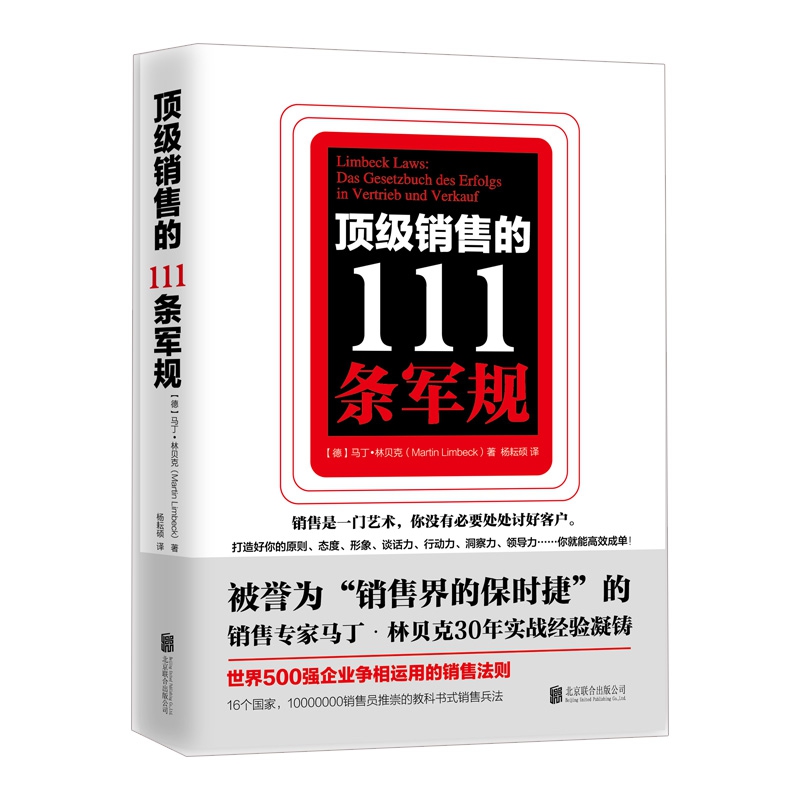 1 ★被誉为“销售界的保时捷”的销售专家马丁?林贝克30年实战经验凝铸!世界500强企业争相运用的销售法则!16个国家,10000000销售员推崇的教科书式销售兵法! ★本书提出了创造销售佳绩的111 个有效的成功法则和注意事项,是通往顶级销售的必经之路。洞察客户心理,犀利解读他人的能力,树立个人品牌,能让你无往而不胜!
