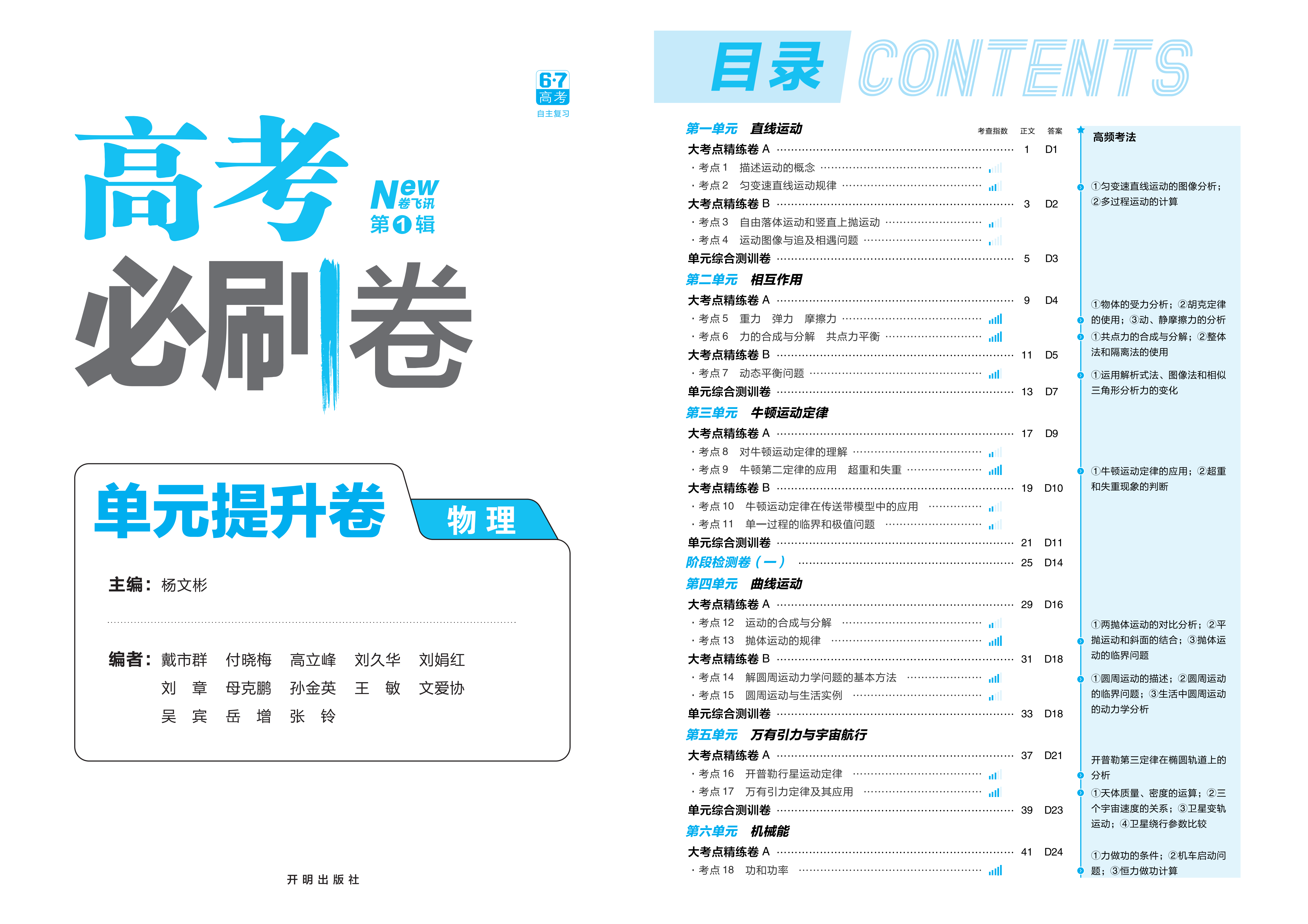 2023 高考必刷卷 单元提升卷 物理 6·7高考(江苏版) 出版时间 2022-03-01T00:00 物理 91200 作者: 杨文彬 出版社: 开明 原售价: 48.80 折扣价: 39.04 折扣购买: 2023 高考必刷卷 单元提升卷 物理 6·7高考(江苏版) ISBN: 9787513157759 作者简介 内容简介 上一篇:高中物理(必修第2册人教版全练版)/1+1轻巧夺冠优化训练下一篇:单元双测高中物理必修第一册人教版