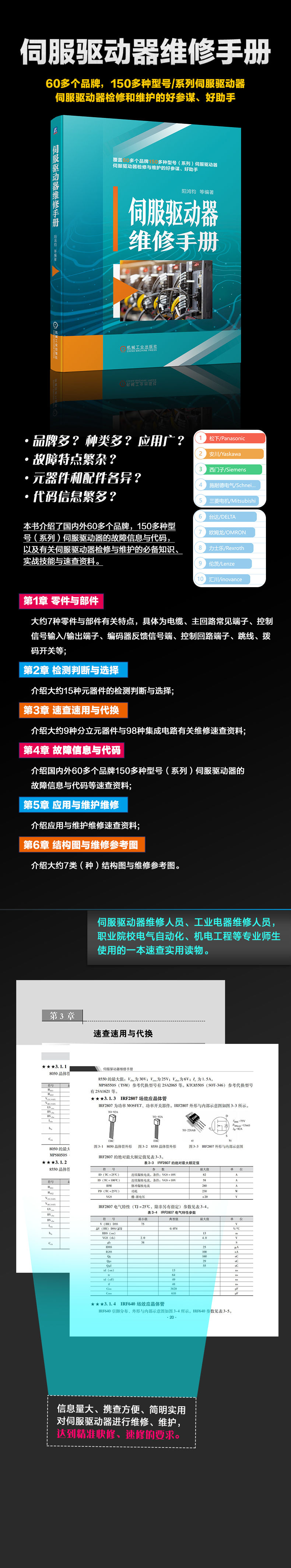 伺服驱动器维修手册 出版时间 2023-02-01T00:00 其他类别 14896 作者: 编者:阳鸿钧|责编:刘星宁//闾洪庆 出版社: 机械工业 原售价: 99.00 折扣价: 72.30 折扣购买: 伺服驱动器维修手册 ISBN: 9787111719069 作者简介 内容简介 1)信息量大,覆盖全面包括60多个品牌150多种型号2)速查快修必备重点介绍伺服驱动器故障信息与代码,以及有关伺服驱动器检修与维护的必备知识、实战技能与速查资料。 上一篇:商业领军之道(新商战王者之路)下一篇:舰船总体技术(海军重点建设教材)
