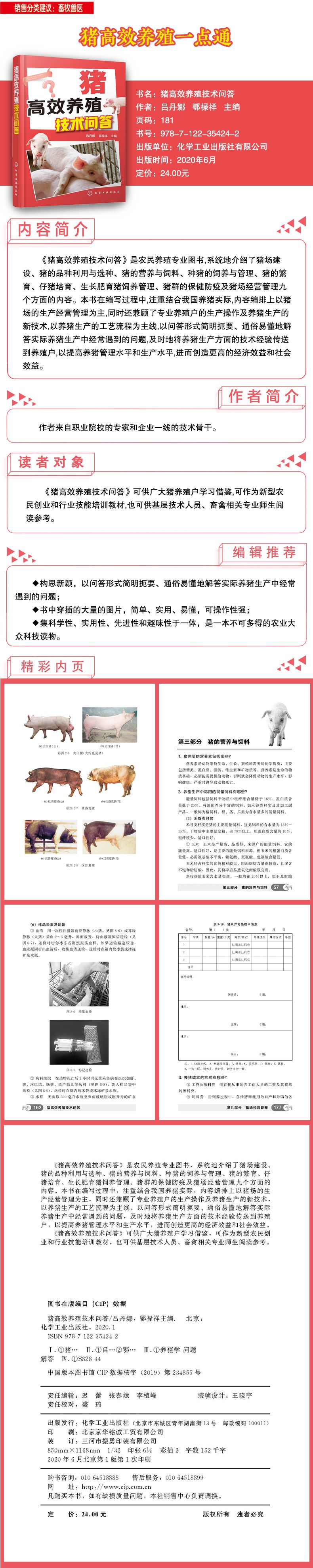 猪高效养殖技术问答 出版时间 2020-06-01T00:00 农业科学 67300 作者: 吕丹娜、鄂禄祥 主编 出版社: 化学工业 原售价: 24.00 折扣价: 16.70 折扣购买: 猪高效养殖技术问答 ISBN: 9787122354242 作者简介 无 内容简介 按照养猪生产的工艺流程为主线,以问答形式简明扼要、通俗易懂地解答实际养猪生产中经常遇到的问题,及时将养猪生产方面的技术经验传送到养殖户手中,提高管理水平和生产水平,进而创造更高的经济效益和社会效益。书中穿插的大量的图片,简单、实用、易懂,可操作性强。 上一篇:南方鲟鱼产业化健康养殖与关键技术下一篇:广东普惠金融发展报告(2020)