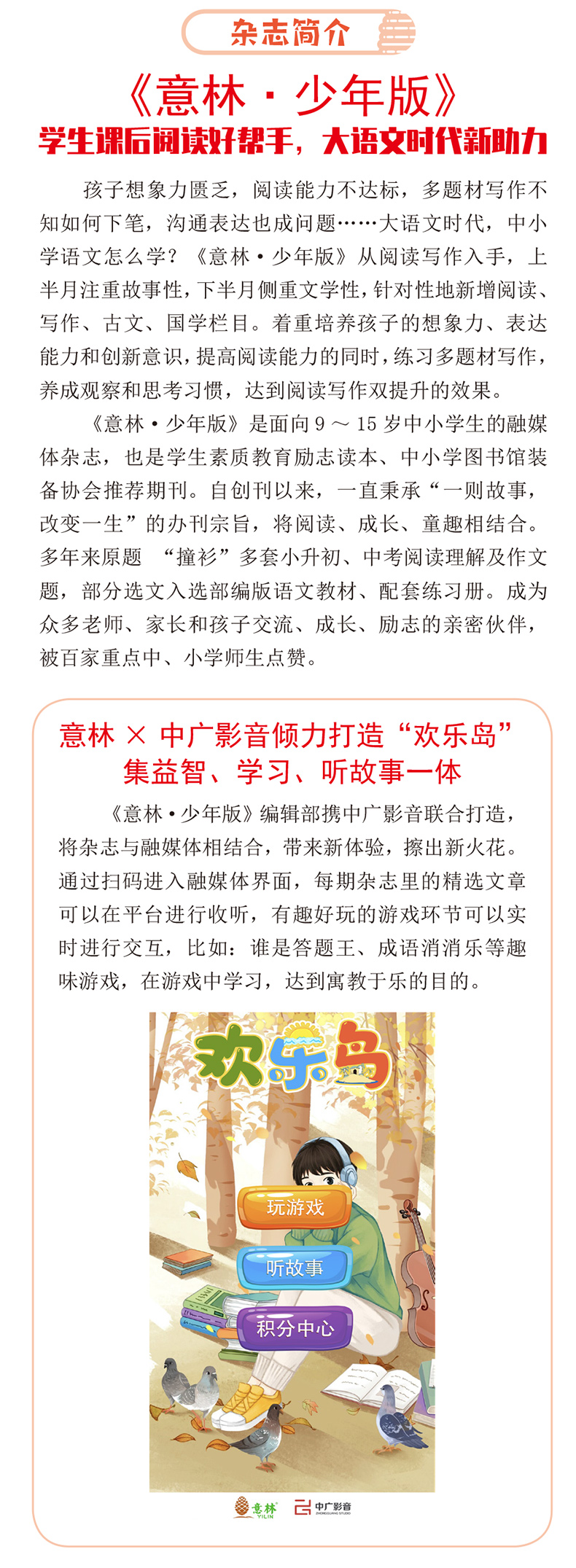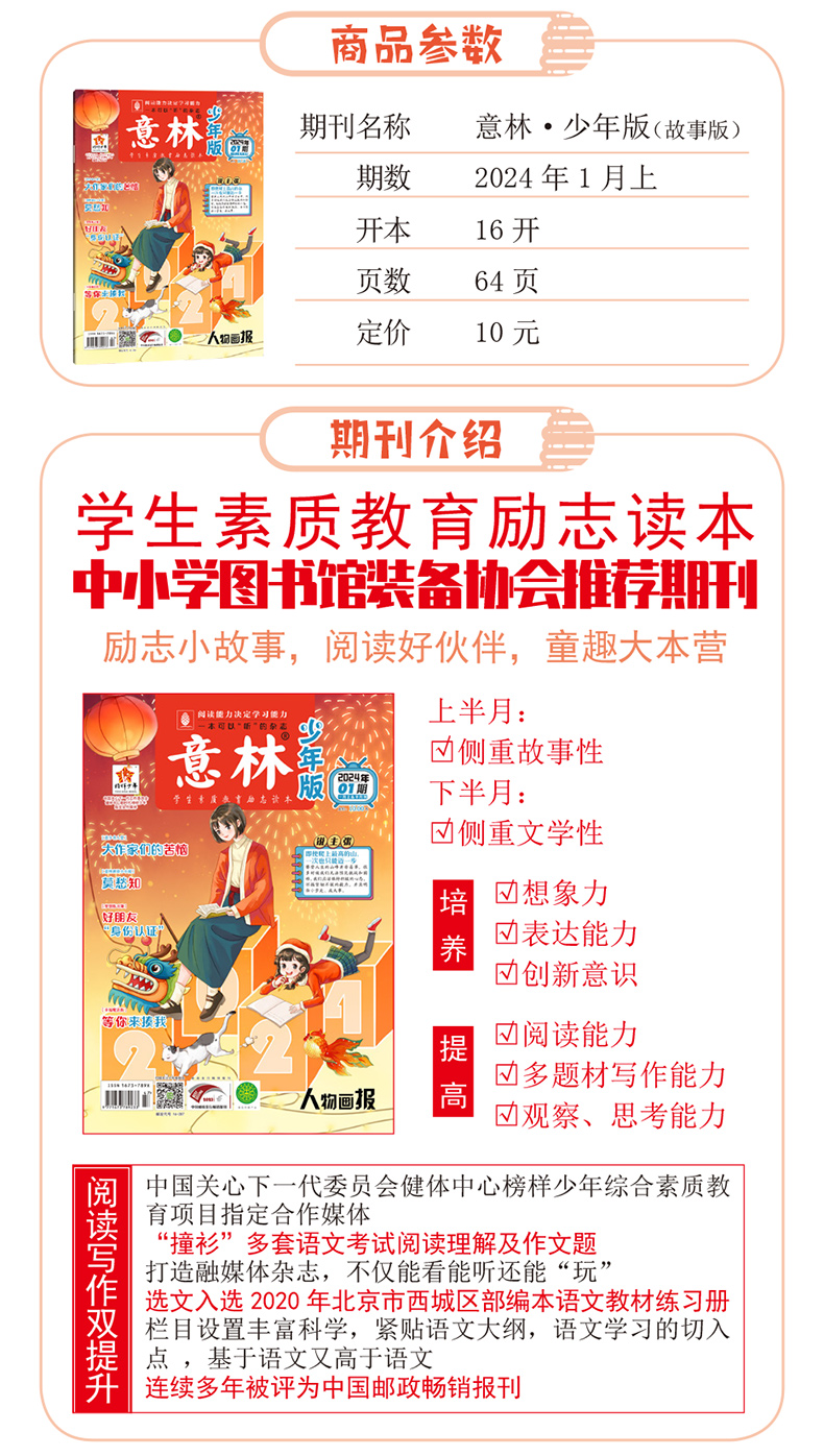 意林(少年版2024年1期1月上半月刊)[2023年1月] 出版时间 2024-01-01T00:00 其他类别 58659 作者: 编者:宋春华|责编:丁东艳//王敏//刘双//娄卓尔//舒钐钐/ 出版社: 人物画报杂志社 原售价: 10.00 折扣价: 8.00 折扣购买: 意林(少年版2024年1期1月上半月刊)[2023年1月] ISBN: 977167378923347 作者简介 内容简介 上一篇:Visual Basic程序设计教程(普通高等教育计算机基础教育系列教材)下一篇:公路养护(十二五职业教育国家规划教材)